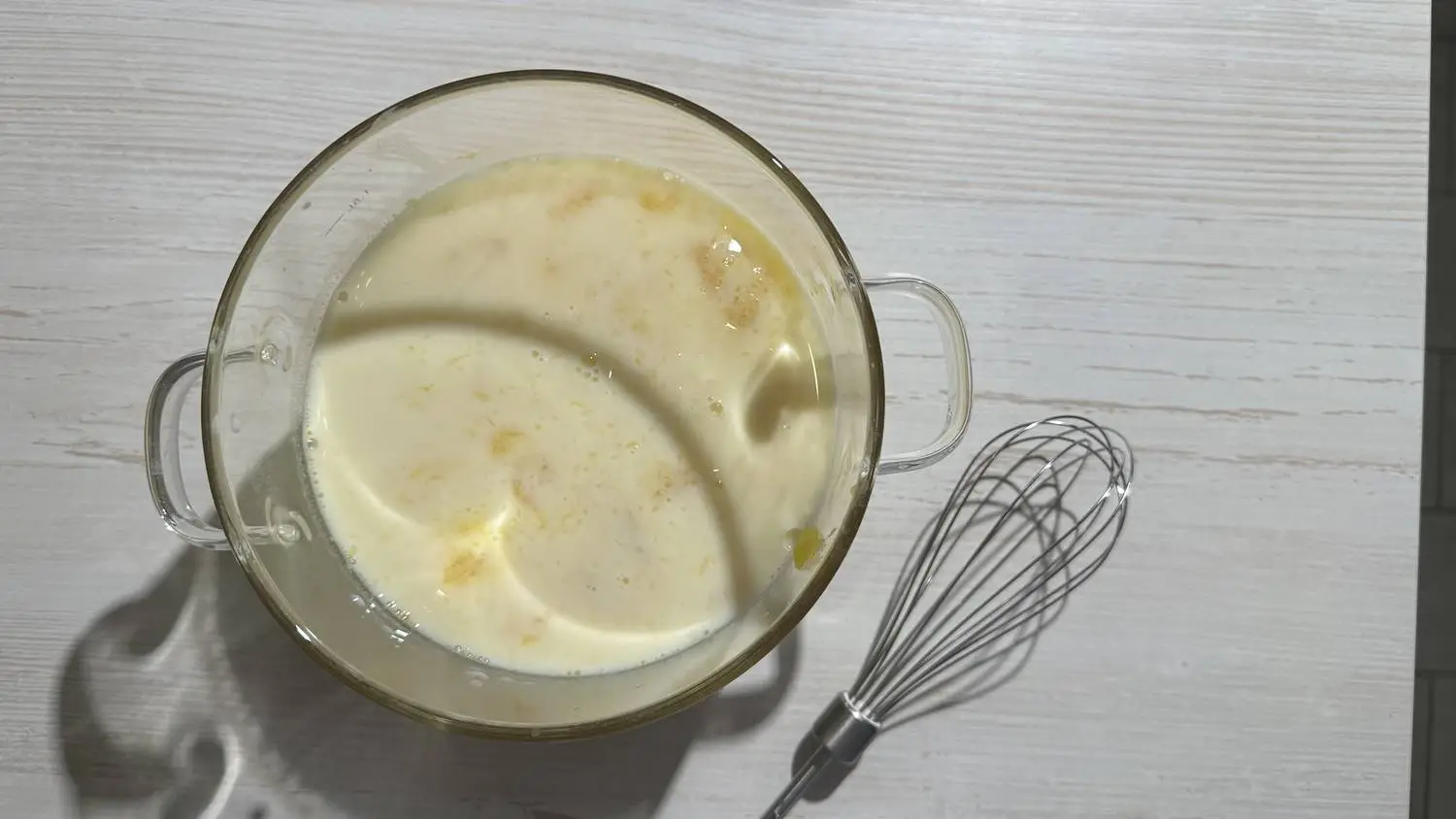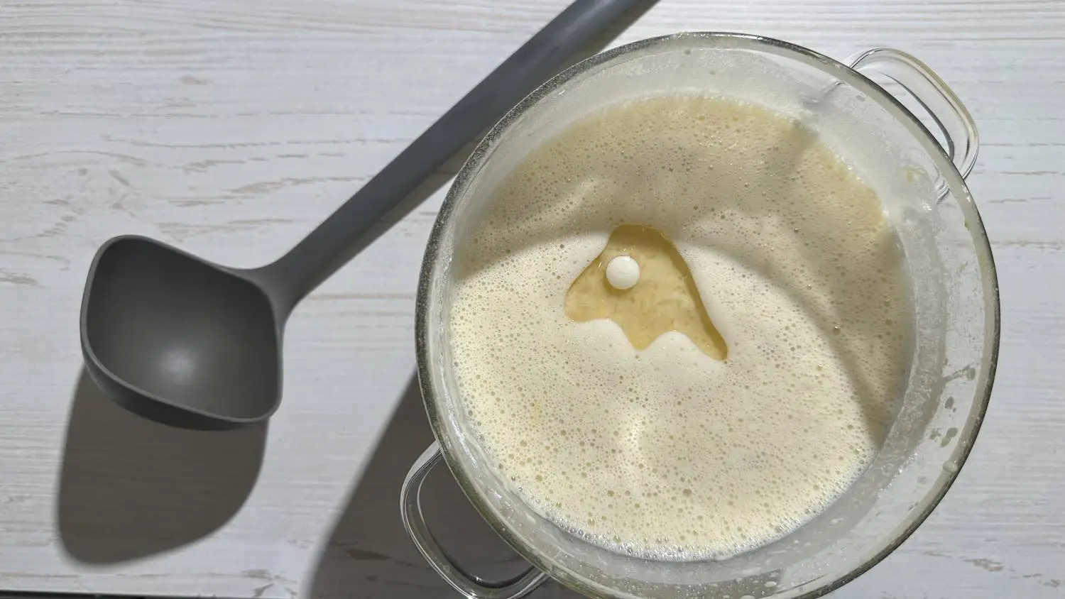Не сливая воду, превратить тыкву в пюре при помощи погружного блендера. Добавить к пюре оставшуюся воду, молоко и яйца.