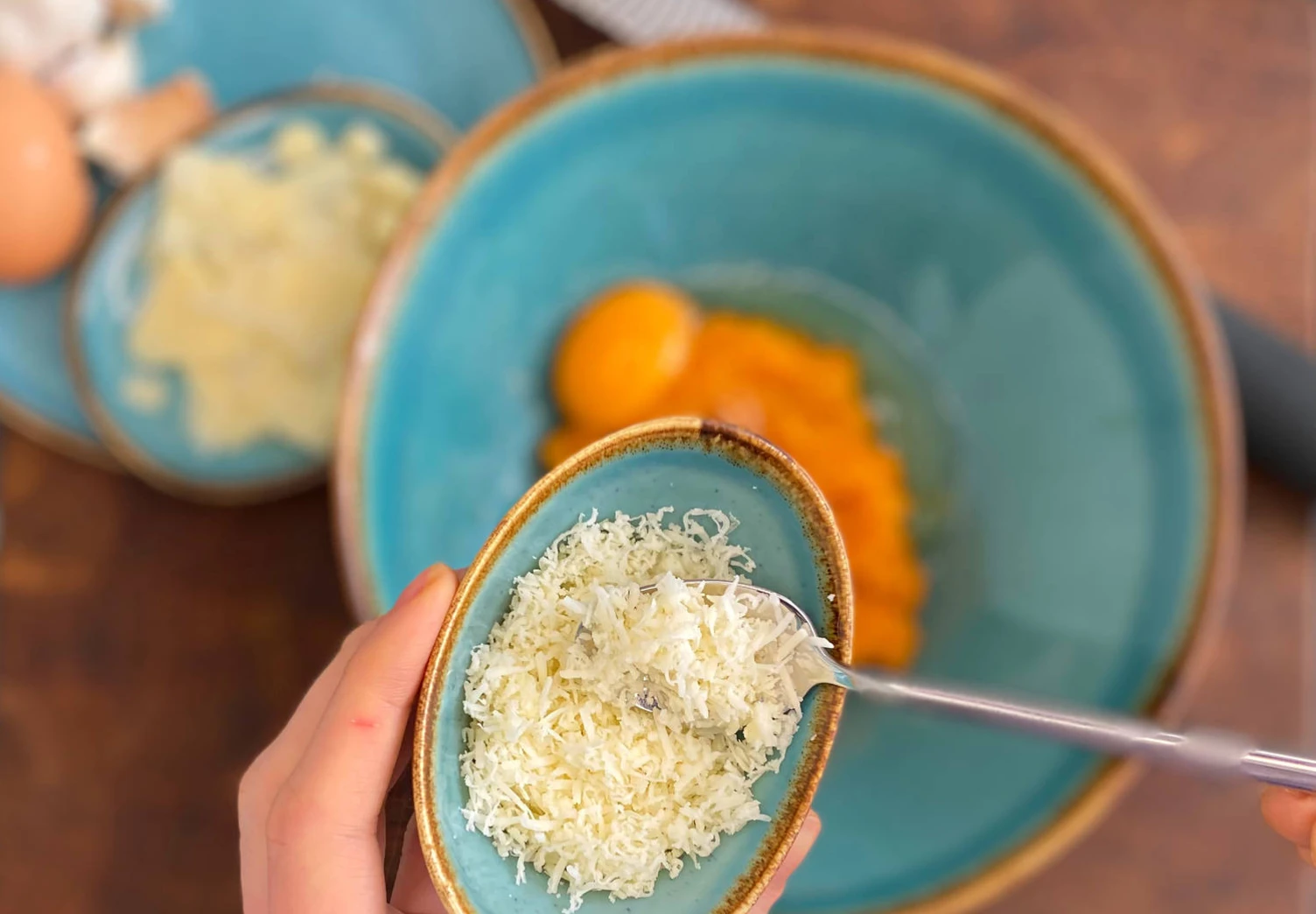 Добавьте 25 граммов тёртого выдержанного сыра. Подойдут «Пармезан», «Грюйер», «Сбринц» и проч.