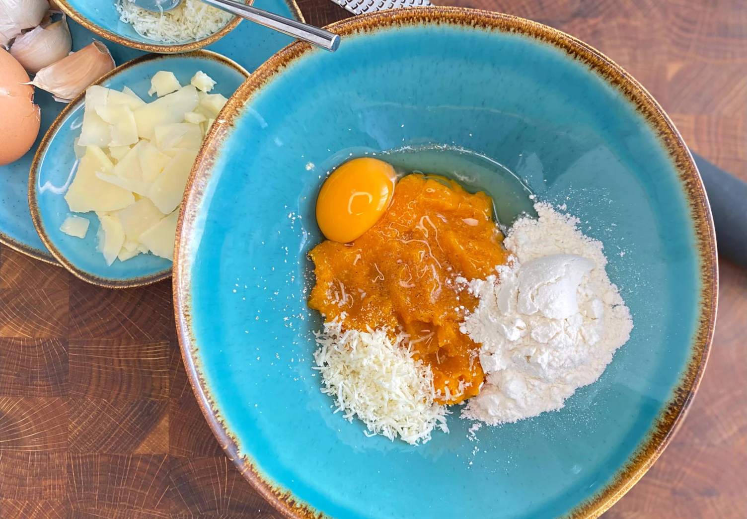 Добавьте одно яйцо, треть чайной ложки мускатного ореха, соль. Постепенно вводите муку. Вам может понадобиться больше или меньше указанного в рецепте объёма в зависимости от… всего на свете.