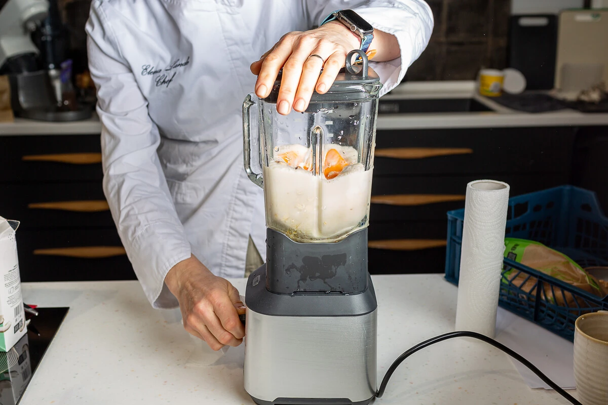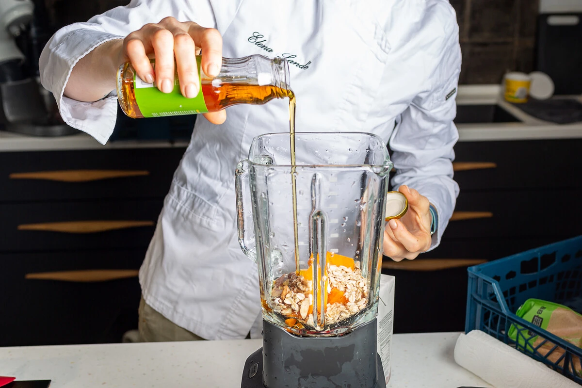 Измельчите все ингредиенты до однородности — и тыквенный смузи готов.