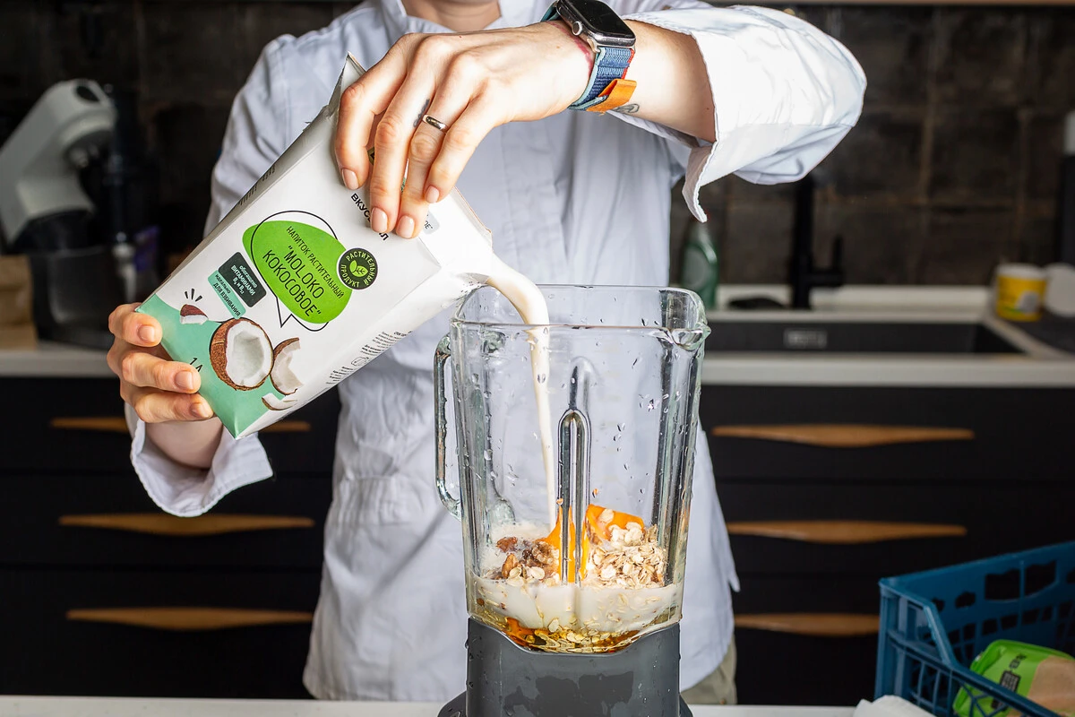 Тыквенный смузи с кокосовым молоком и овсяными хлопьями — хороший вариант завтрака или перекуса. Кстати, он не содержит ингредиентов животного происхождения и глютена. В рецепте приведено ориентировочное количество и соотношение ингредиентов – вы можете менять его по своему вкусу.