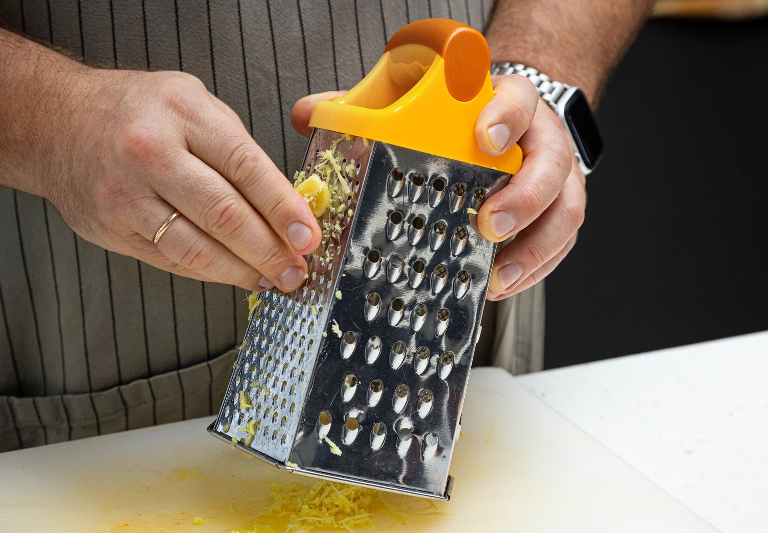 Корень имбиря почистите и натрите на мелкой тёрке.