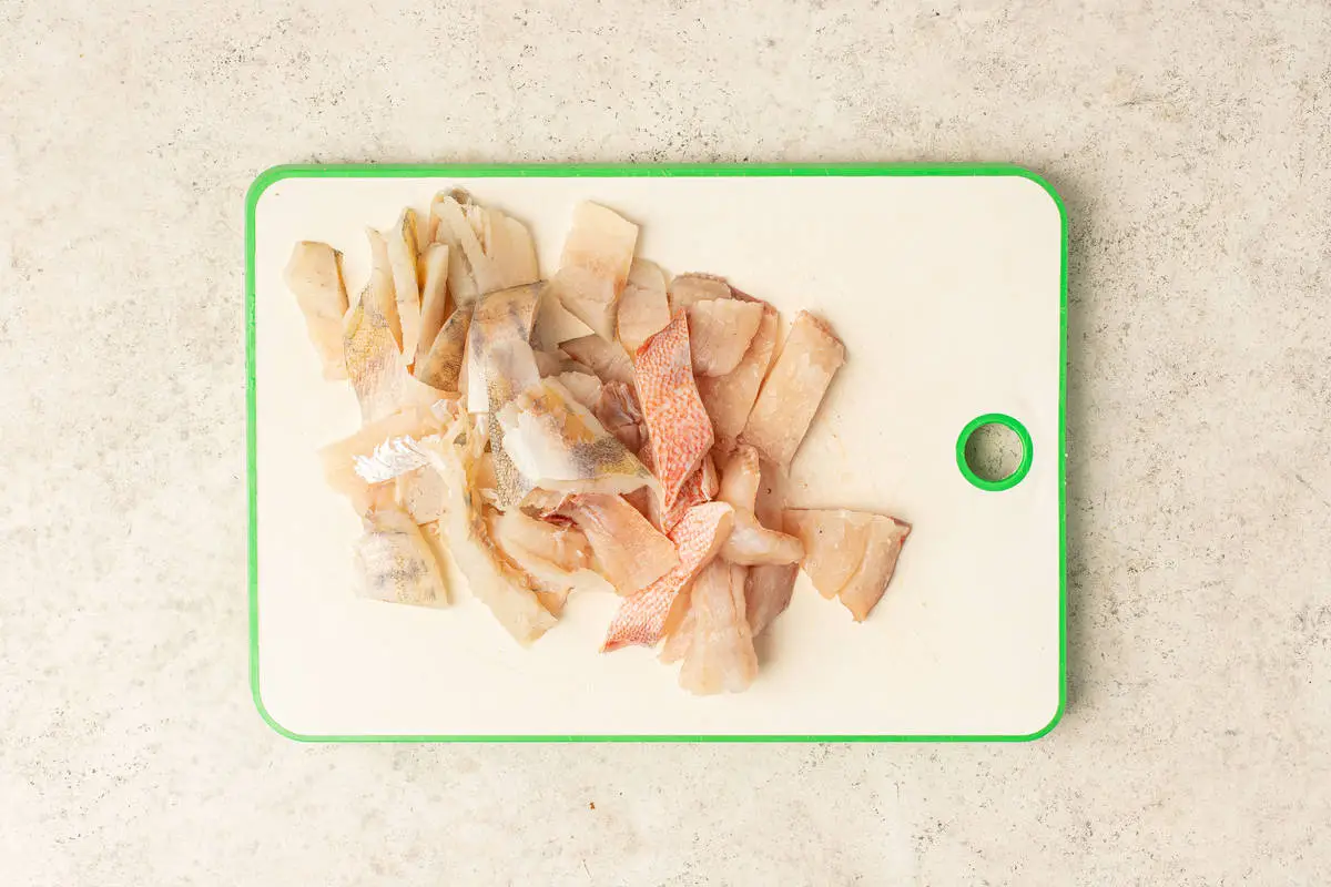 Филе проверьте на наличие косточек, промойте. Нарежьте небольшими кусочками.