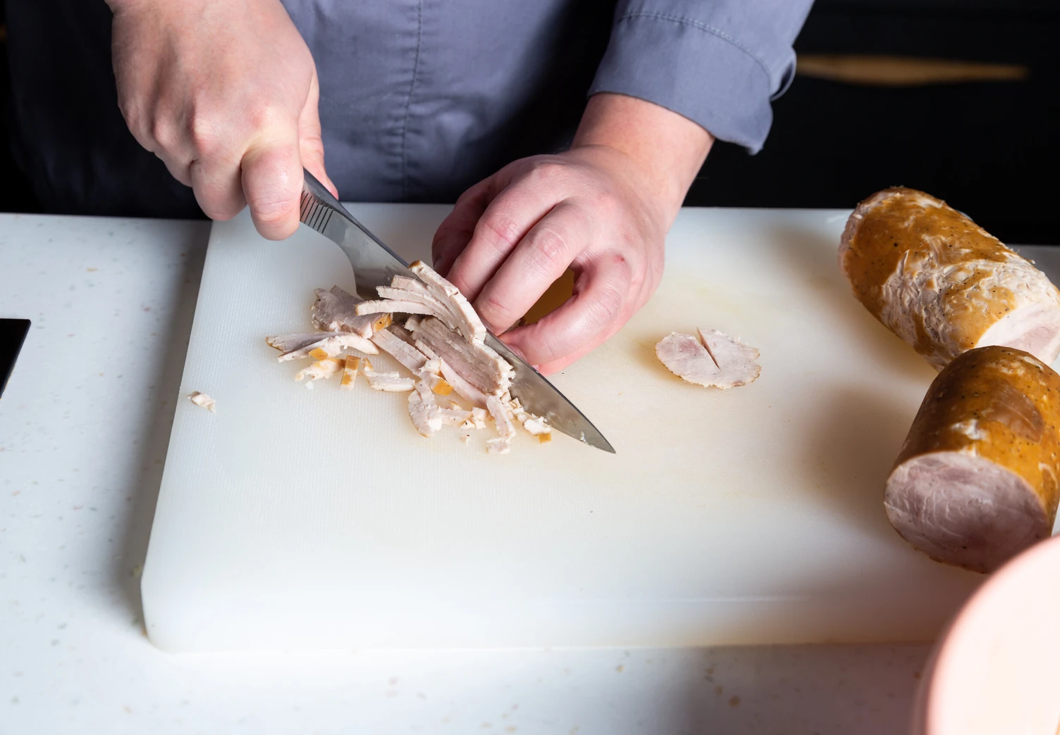 Ветчину нарежьте тонкими слайсами, сыры натрите на тёрке, зелень мелко порубите.
