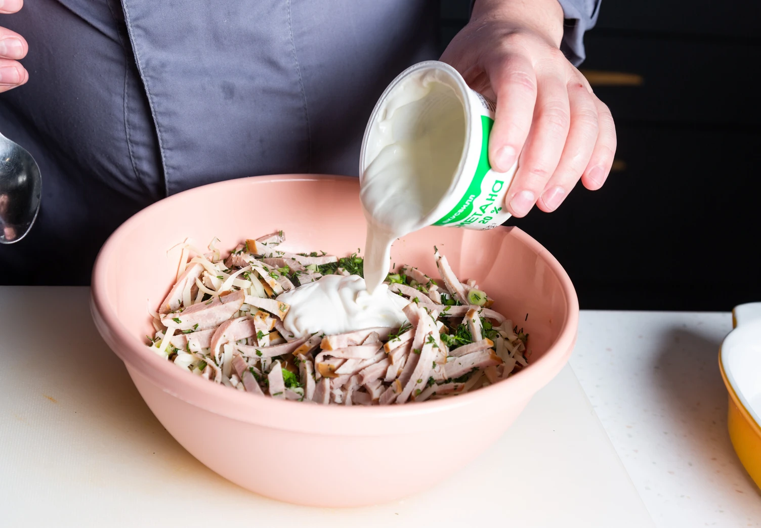 В рецепте используются товары из категорий:                              Колбаса, сосиски, деликатесы; Сыры; Молочные продукты, яйцо; Овощи, фрукты, ягоды, зелень; Масла, соусы, специи, сахар и соль; Особое питание