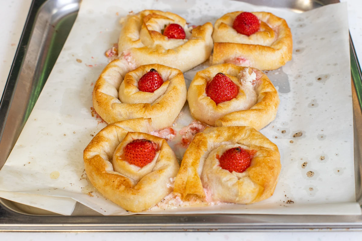Нежная творожно-клубничная начинка в тонком хрустящем тесте — только представьте, как это вкусно! Представили? Тогда вот рецепт, который ещё лучше, чем самая вкусная фантазия.