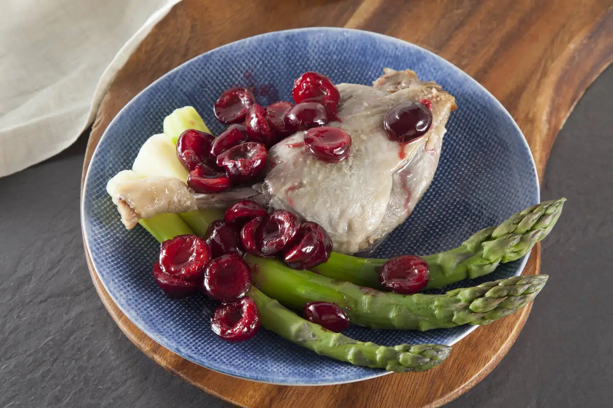 Рецепт «Утиное конфи со спаржей и соусом из черешни»