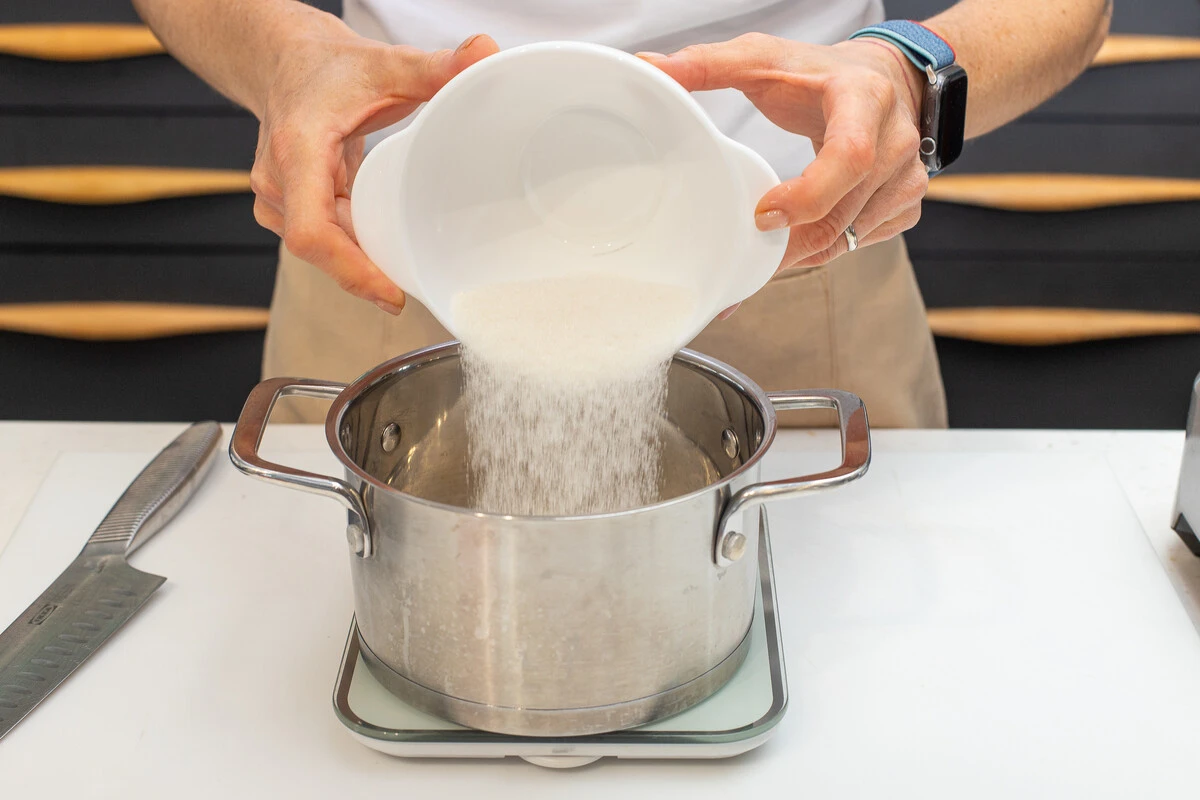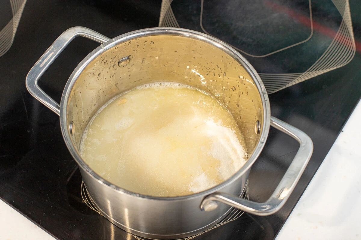 Поставьте на огонь и прогревайте до полного растворения сахара, должны образовываться крупные пузыри.