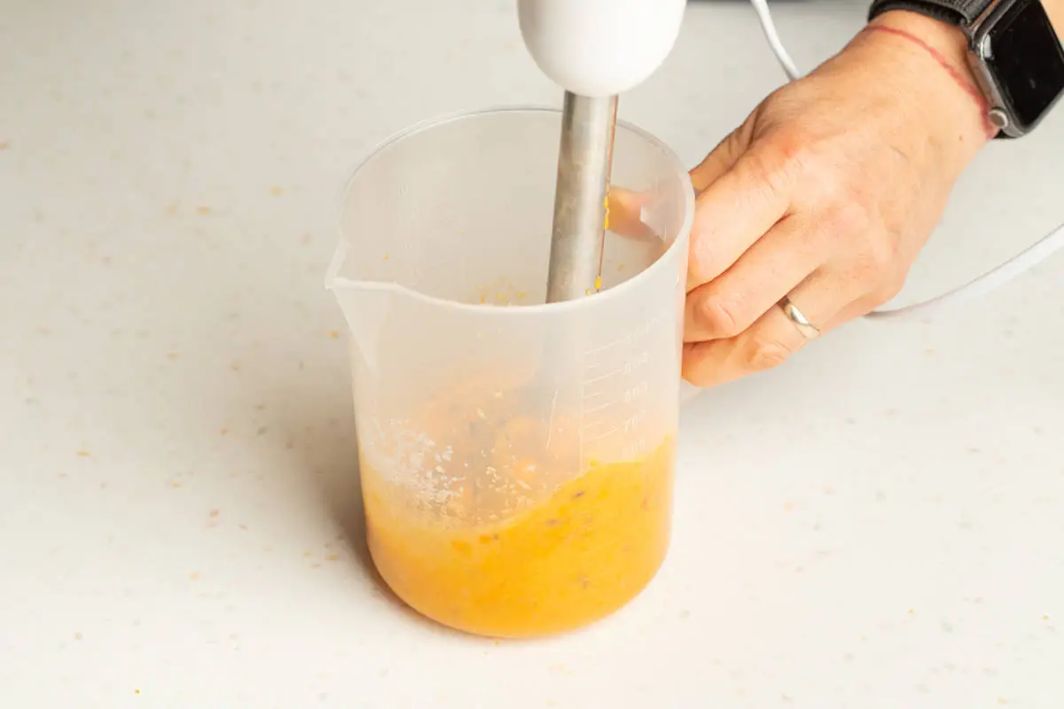 Пробейте в блендере облепиху с сахаром. Не слишком усердствуйте и лучше не используйте слишком мощный миксер, чтобы не смолоть косточки вместе с ягодами, они должны остаться целыми.