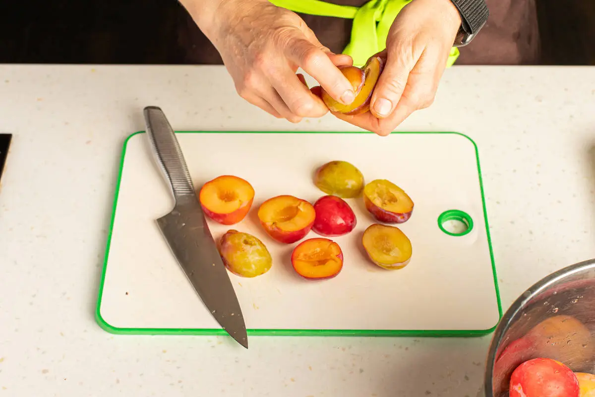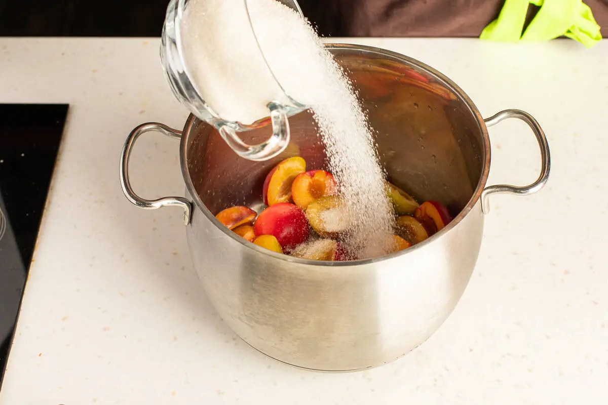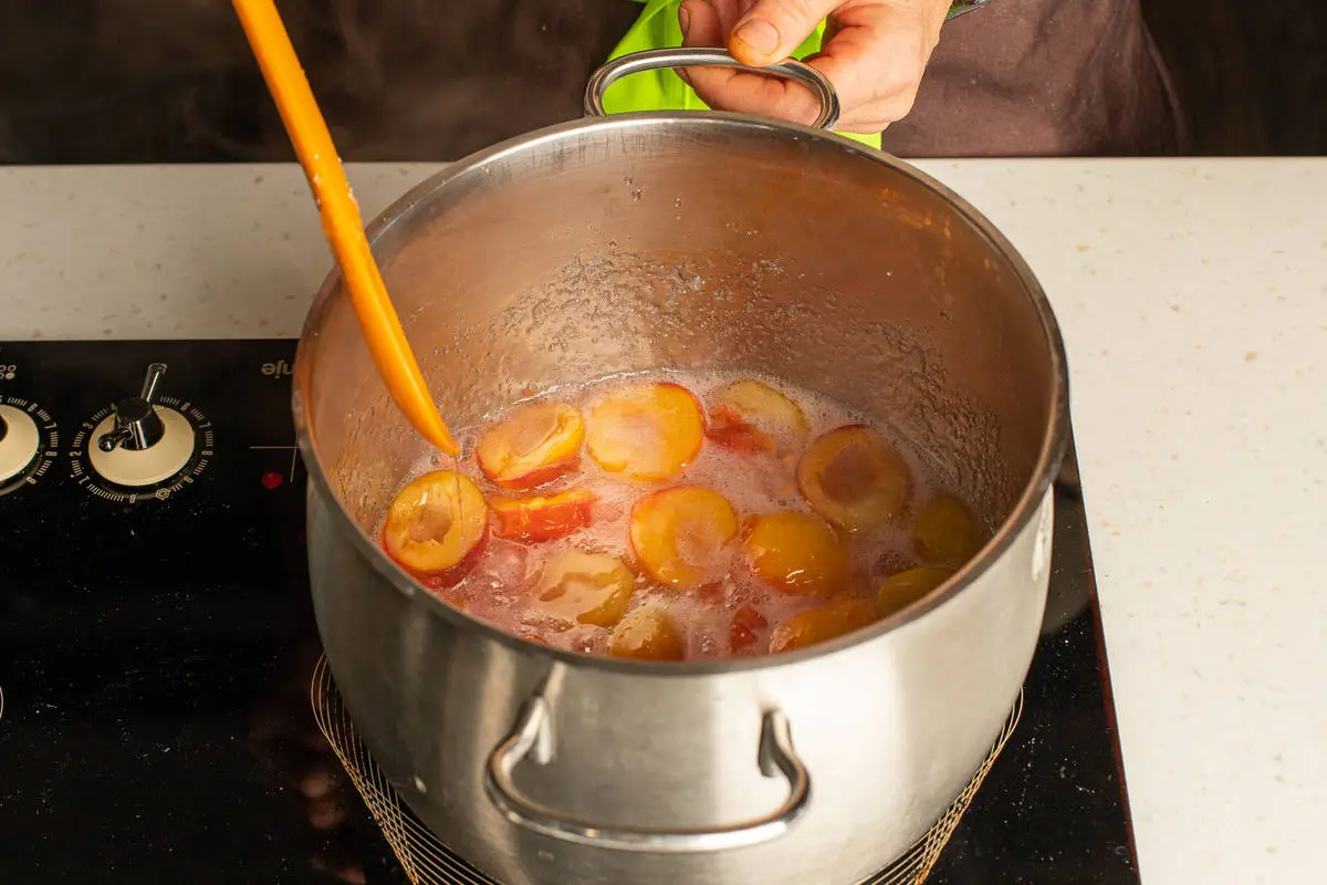 Добавьте к сливе 100 мл воды и доведите до кипения, варите 10 минут, снимая пенку. Отставьте на час.