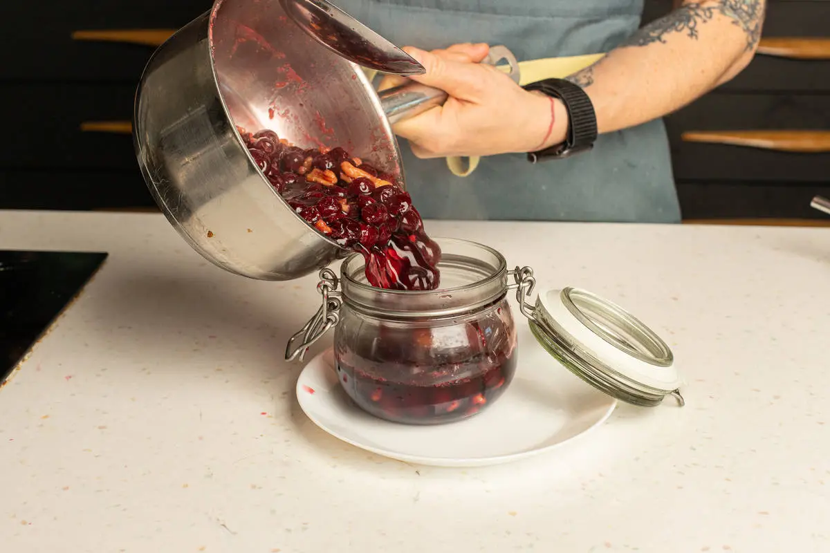 Подготовьте банки, простерилизовав их в духовке (медленно нагрейте до 100 °C и держите 10-15 минут) или над паром.