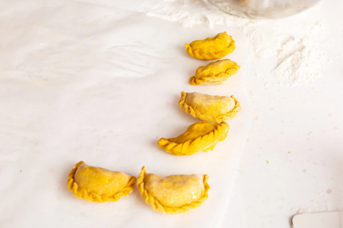 Готовьте их в кипящей подсоленной воде 3 минуты после всплытия. Если вы защипывали края вареников косичкой, как на фото, то варите на 2 минуты дольше.