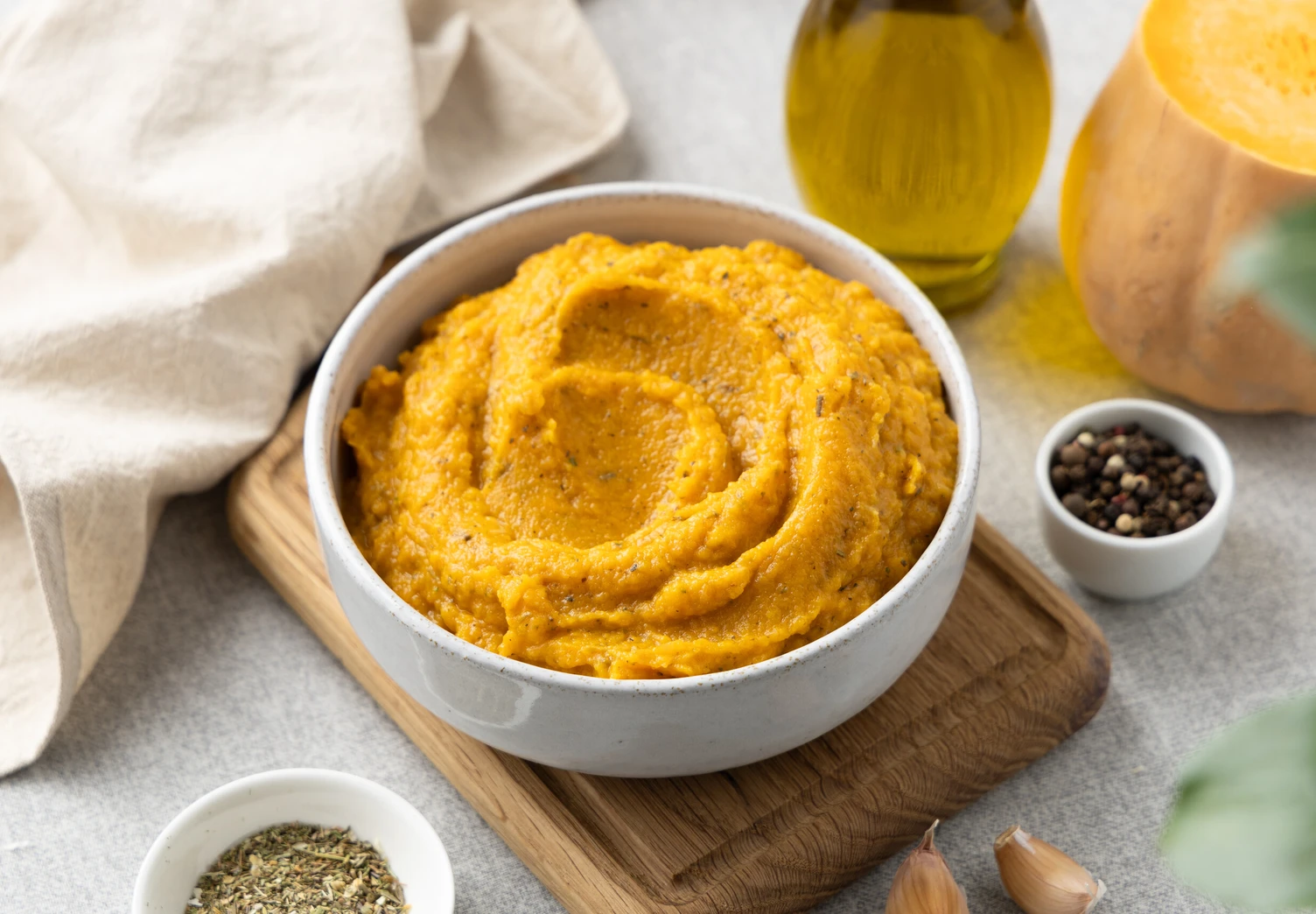 Измельчите до однородности запечённые ингредиенты для тыквенного слоя.