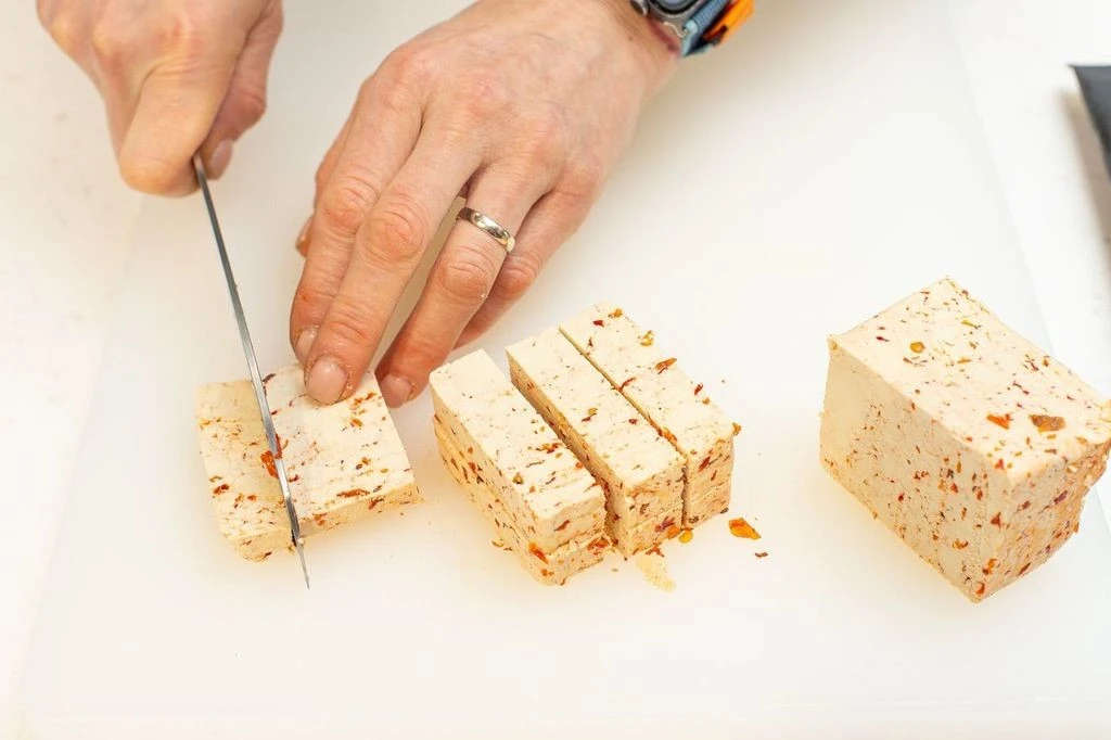Тофу нарежьте брусочками толщиной примерно 1 см.