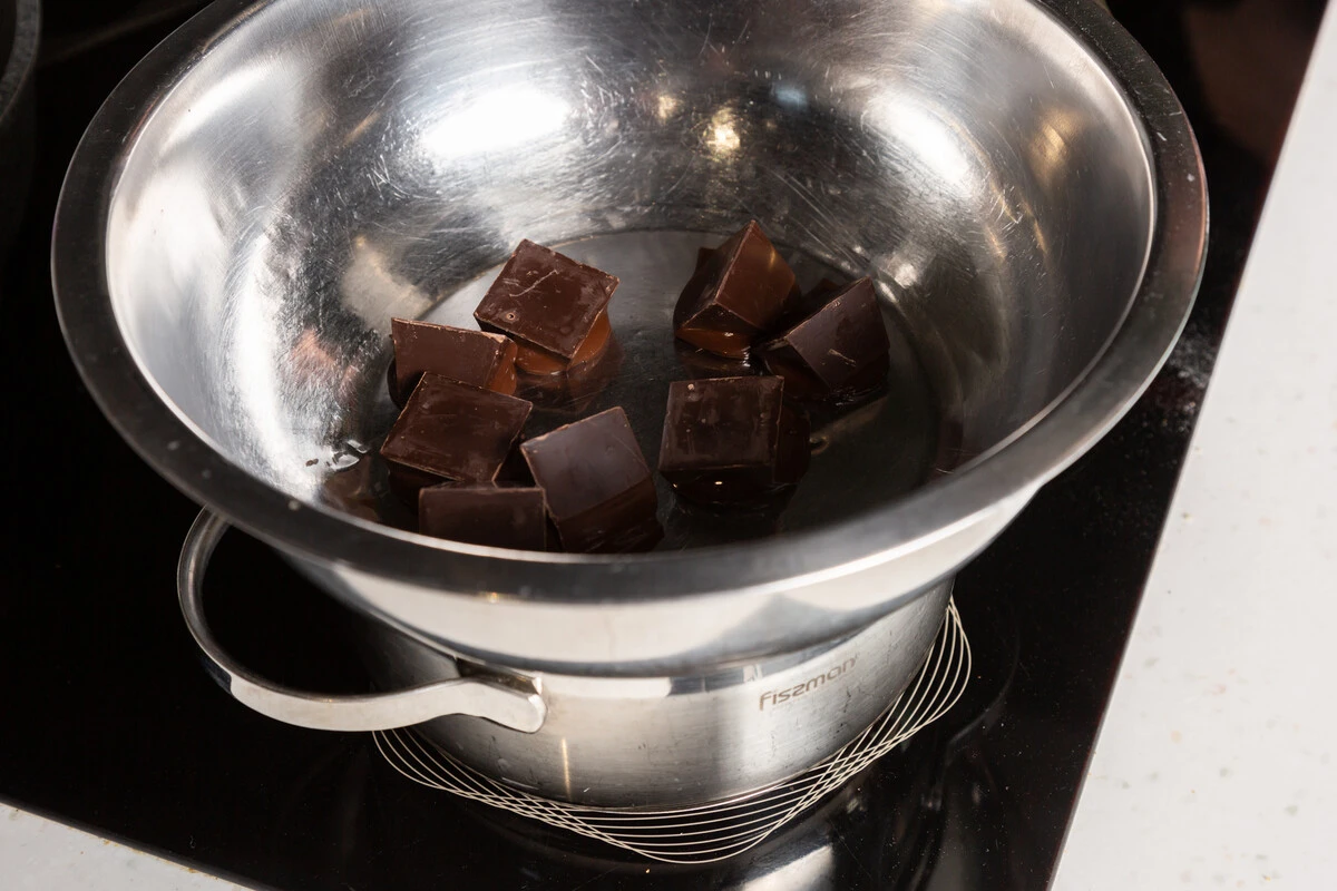 Шоколад растопите на водяной бане или короткими импульсами по 5–10 секунд в микроволновке.