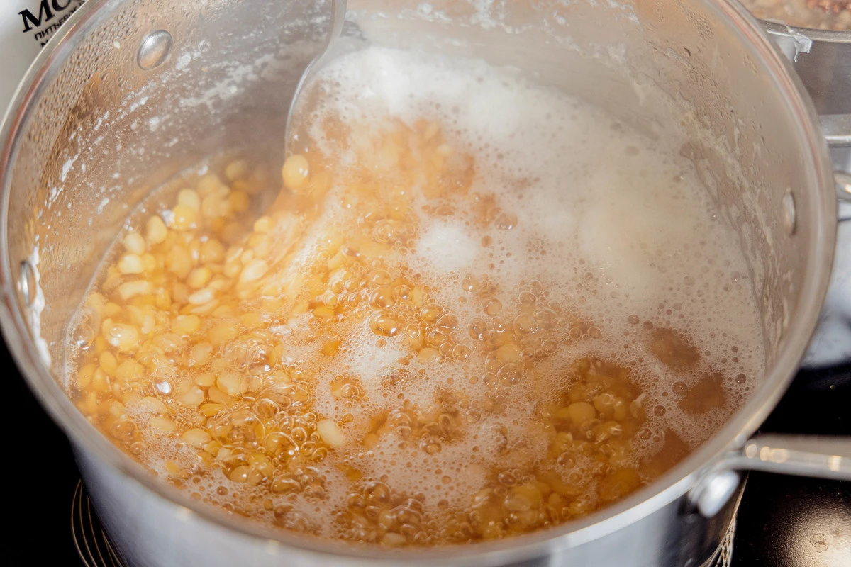 Доведите до кипения, затем понизьте огонь до средней температуры и варите до мягкости (около 30-40 минут).