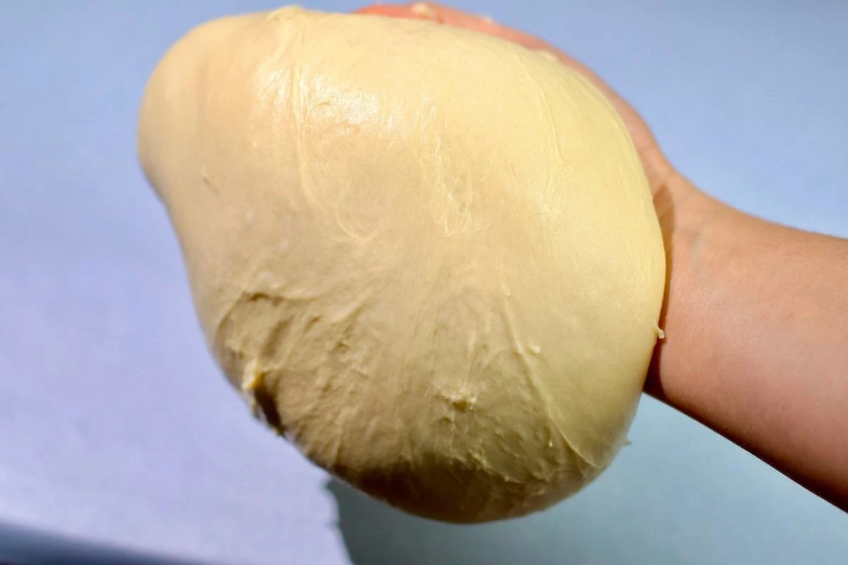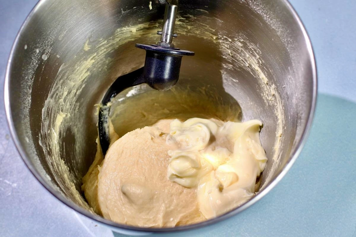 Добавьте размягченное сливочное масло комнатной температуры. Замешивайте тесто еще около 5 минут.