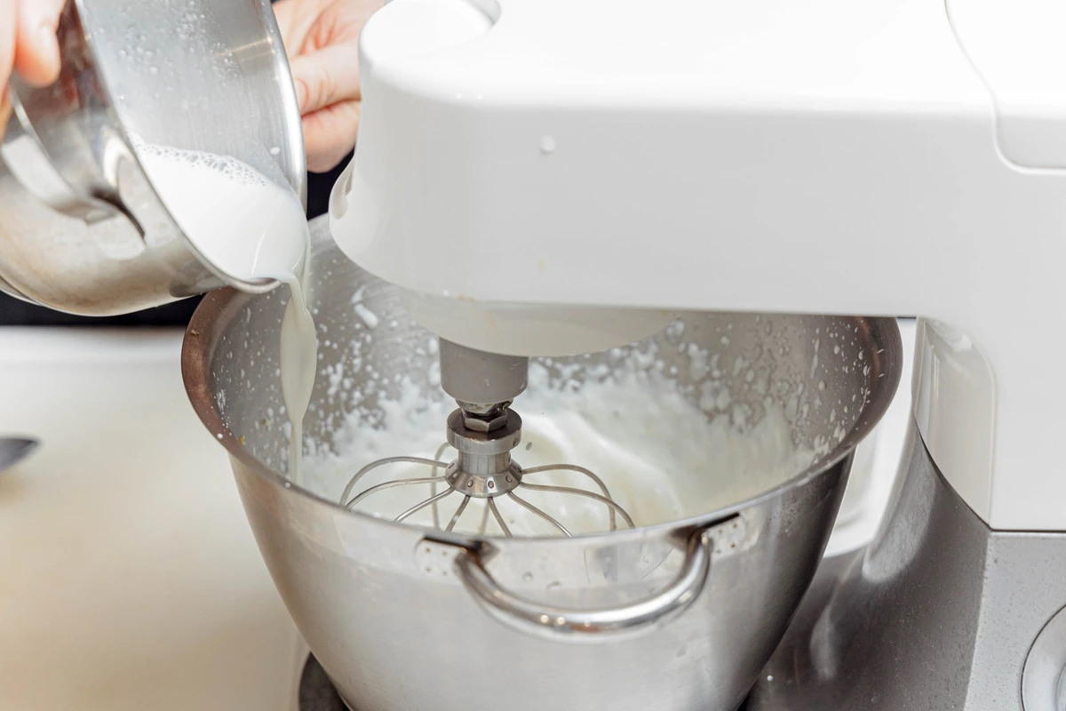 Влейте молоко с желатином в творог и ещё раз хорошо взбейте.