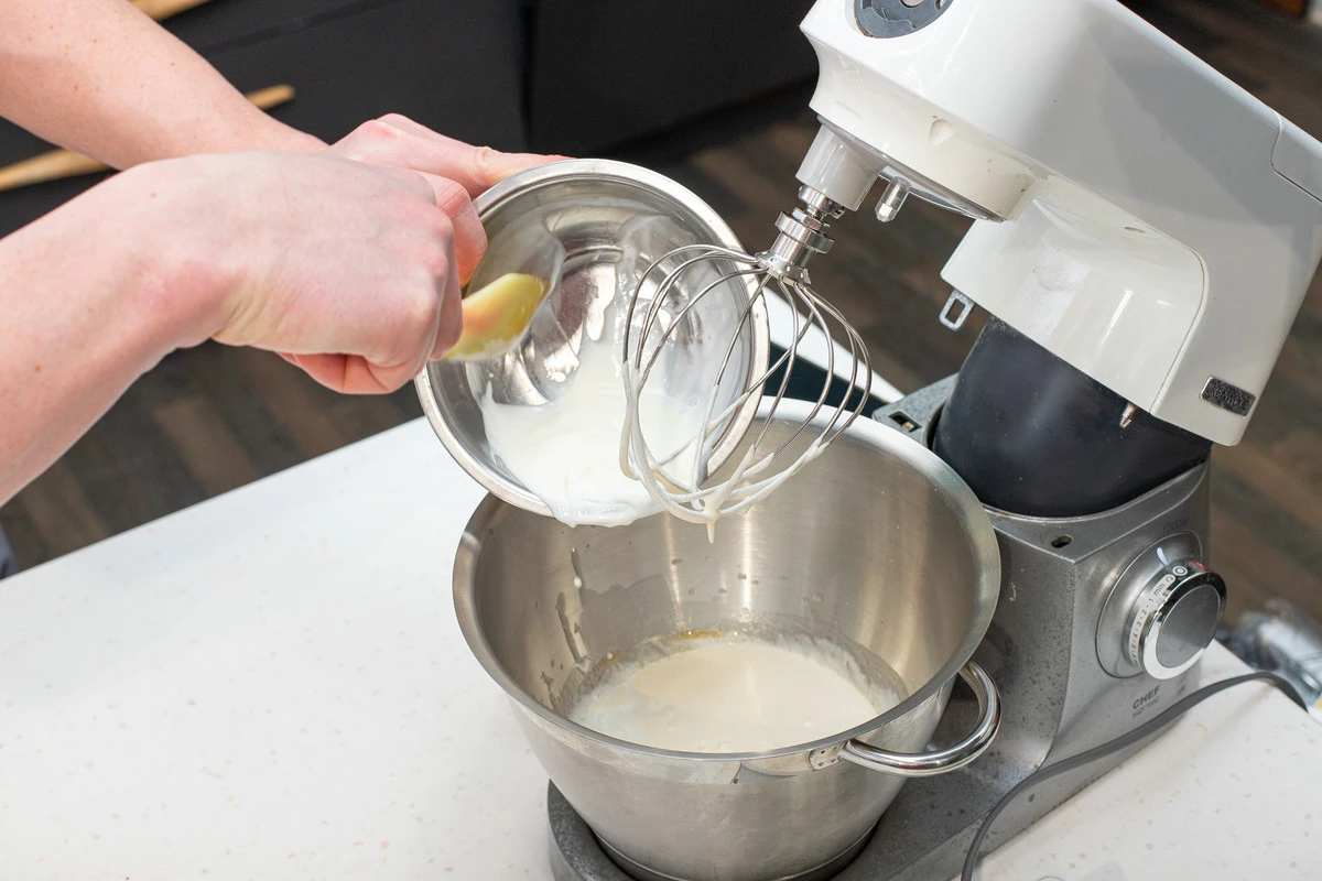 Добавить сметану и кефир, затем сыпучие ингредиенты.