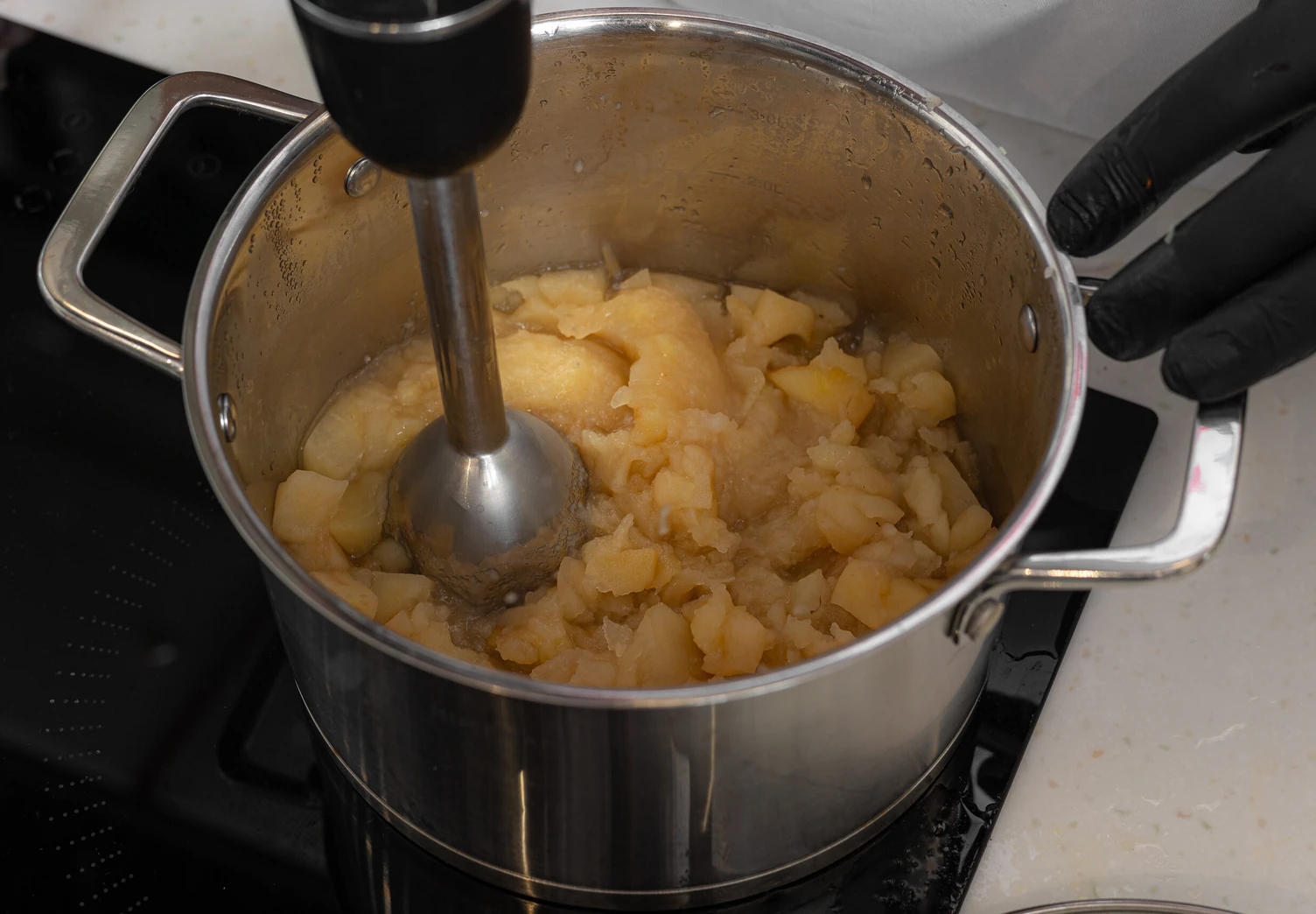 Взбейте яблочную массу блендером до получения гладкой текстуры.
