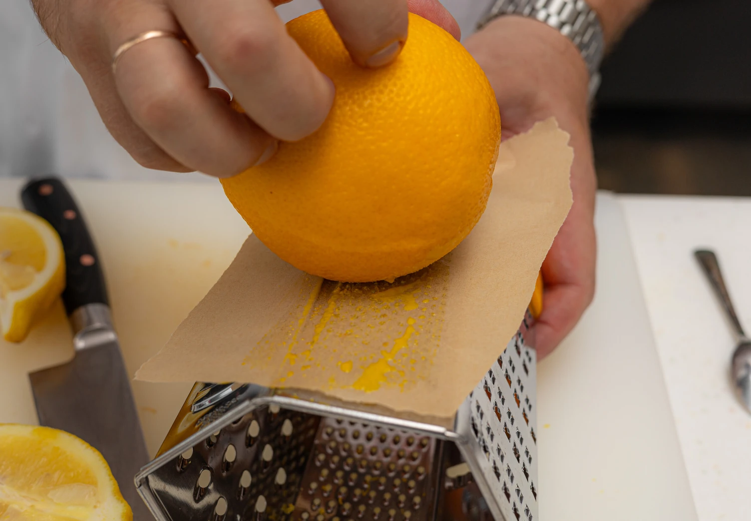 Натрите цедру апельсина на тёрке.