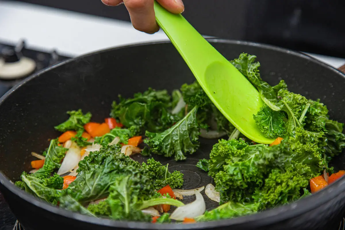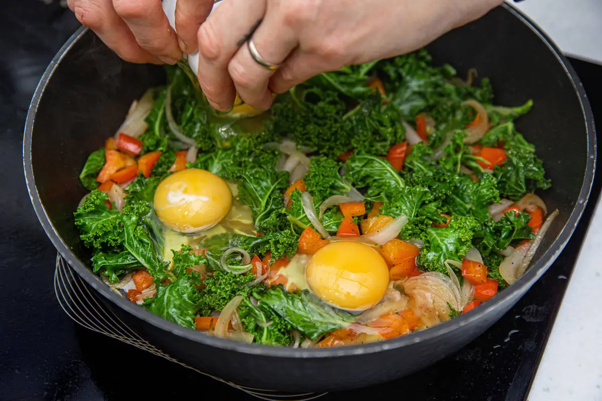 Яичница с кейлом и сладким перцем готова.