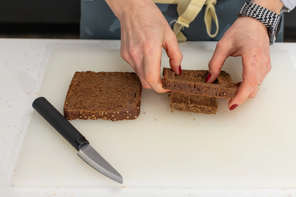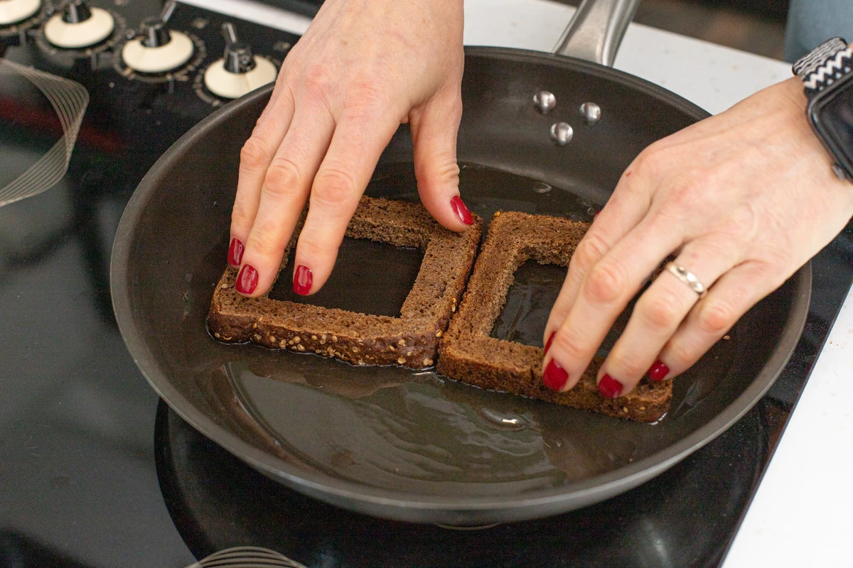 Из кусков хлеба вырежьте серединку, чтобы получилось квадратное отверстие.