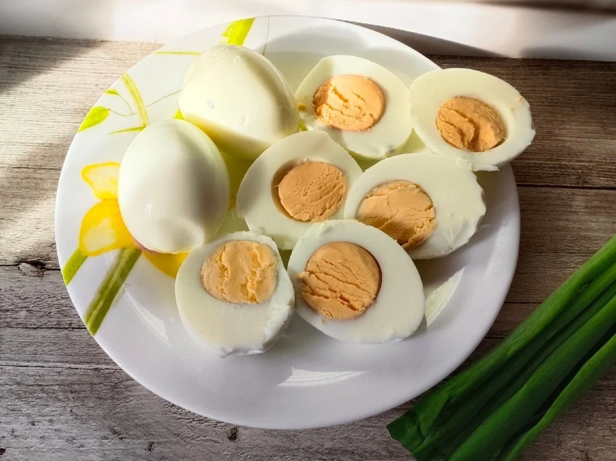 Отварите яйца, очистите от скорлупы и разрежьте пополам, отложите желтки.