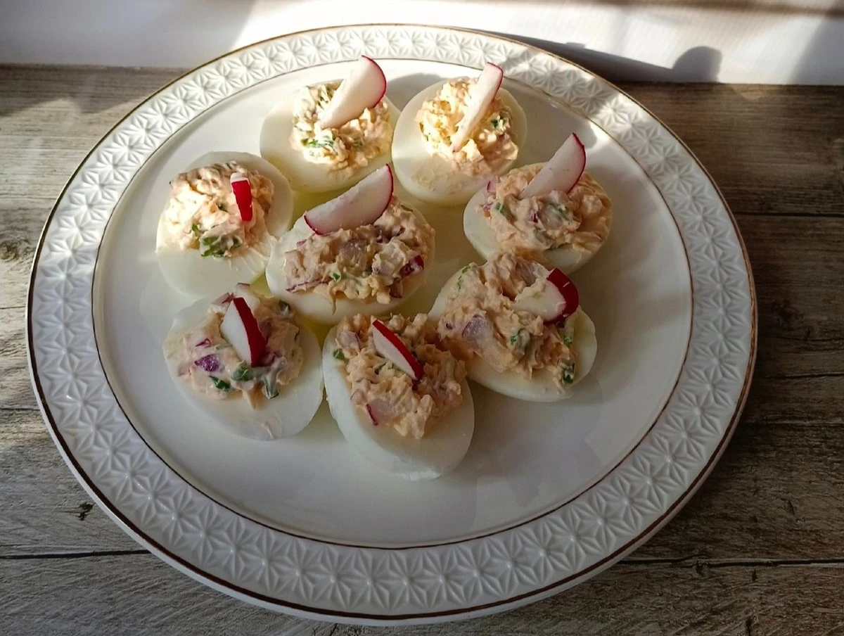 Рецепт «Яйца, фаршированные редисом и зелёным луком»