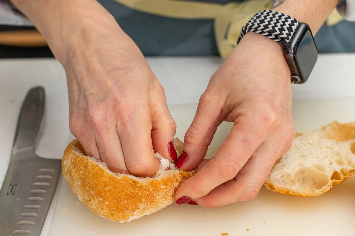 Из нижней части выньте немного мякиша, сделав тем самым углубление для начинки.