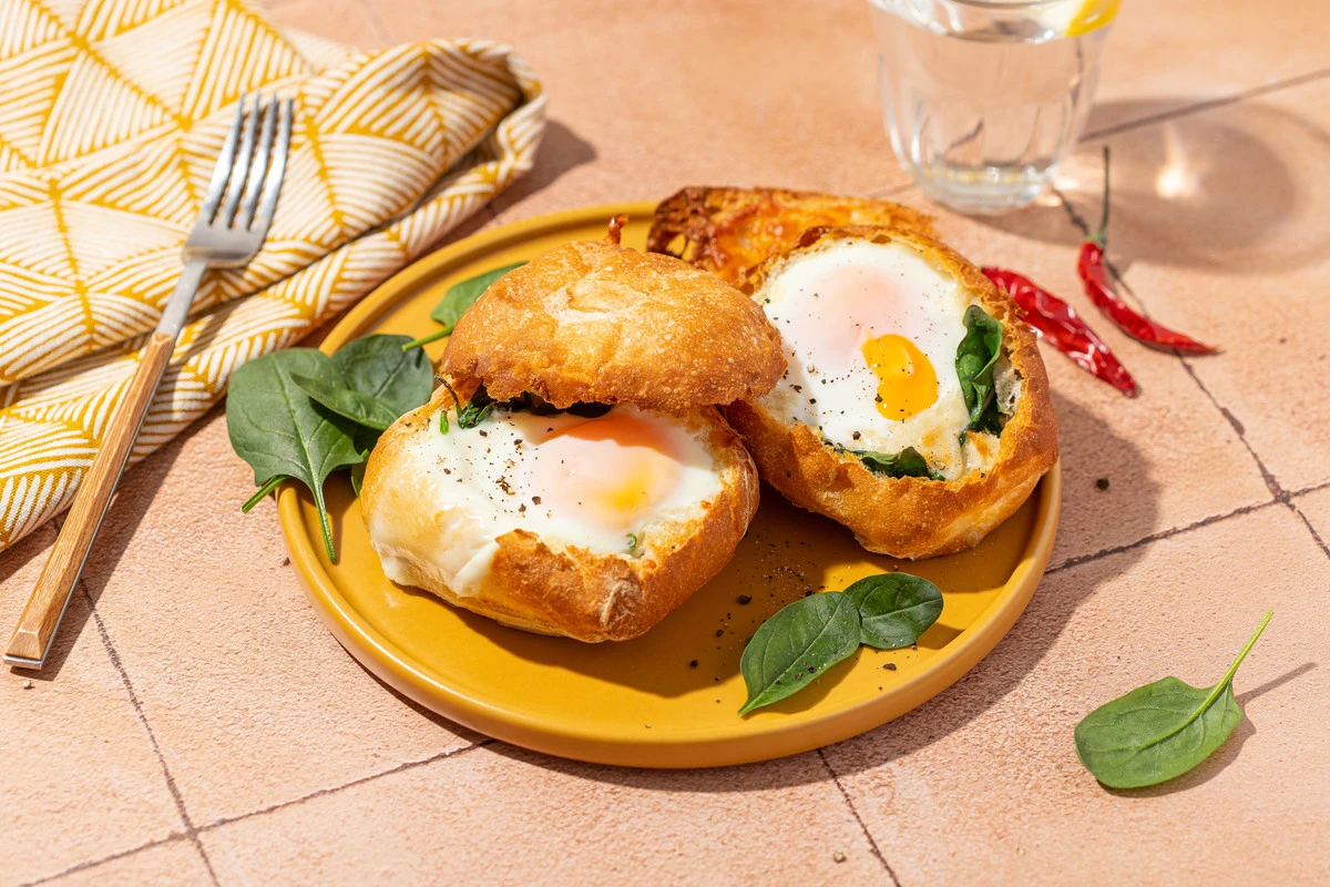 Рецепт «Яйца в хлебе со шпинатом и сыром»