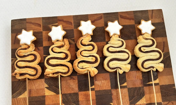 Ёлочки из слоёного теста с шоколадно-ореховой начинкой — эффектная выпечка, с которой справится каждый. Готовится очень легко, а получается безумно вкусно.