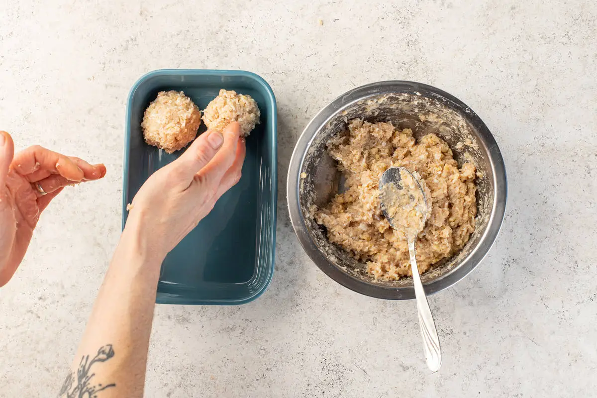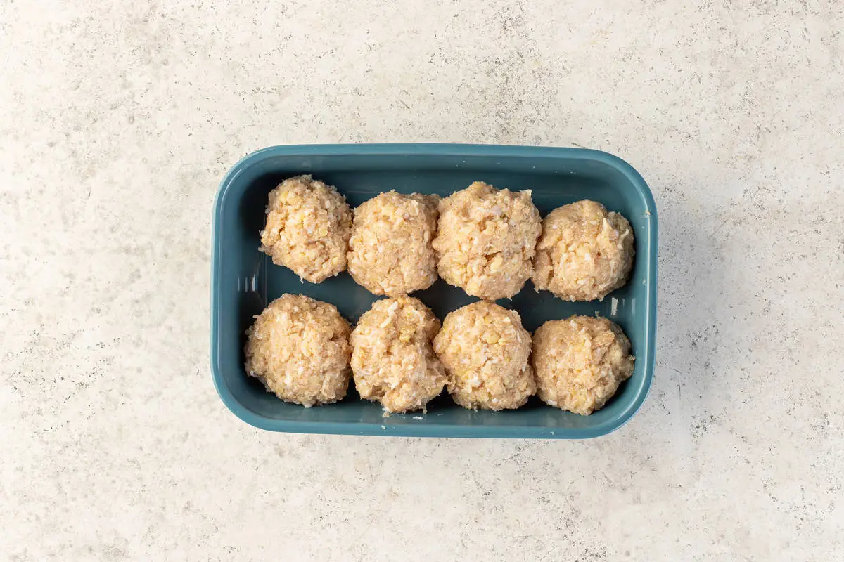 Скатайте из фарша шарики, выложите в форму для запекания.