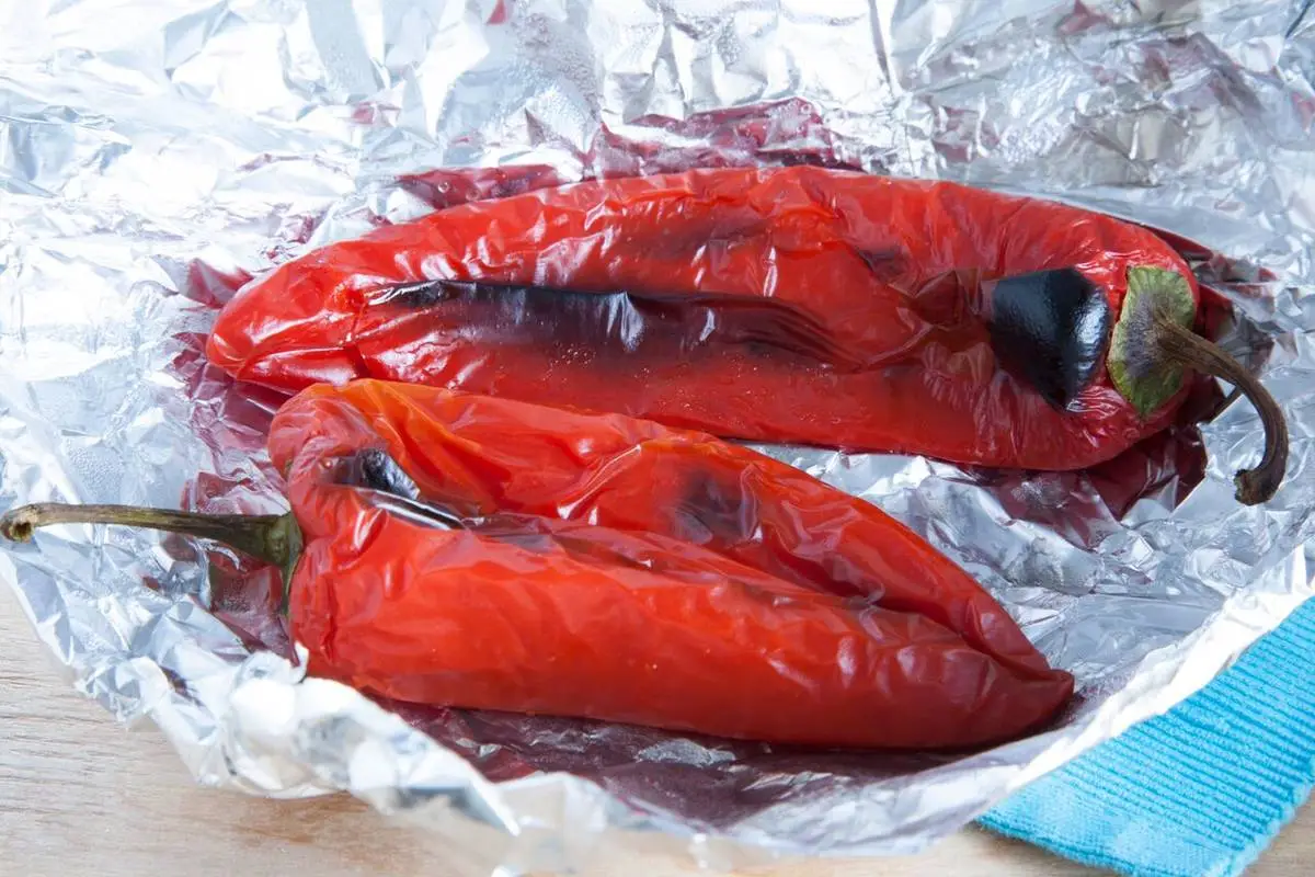 Баклажаны и перцы заверните в фольгу и запеките в духовке (при 200 С) или на углях до мягкости, учтите, что баклажанам времени потребуется больше.
