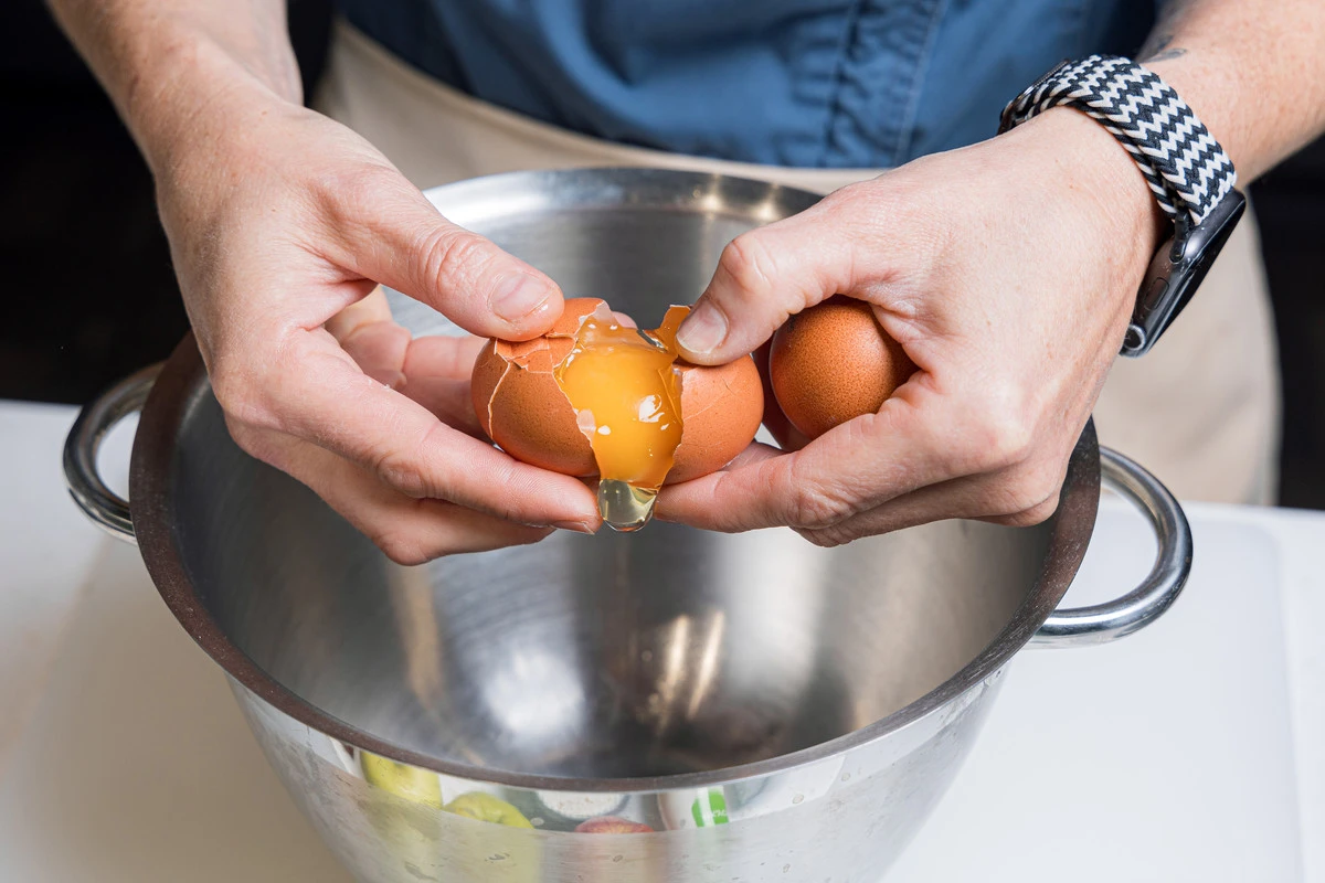 Разбейте яйца в чашу миксера, добавьте сахар и взбивайте 3-4 минуты.
