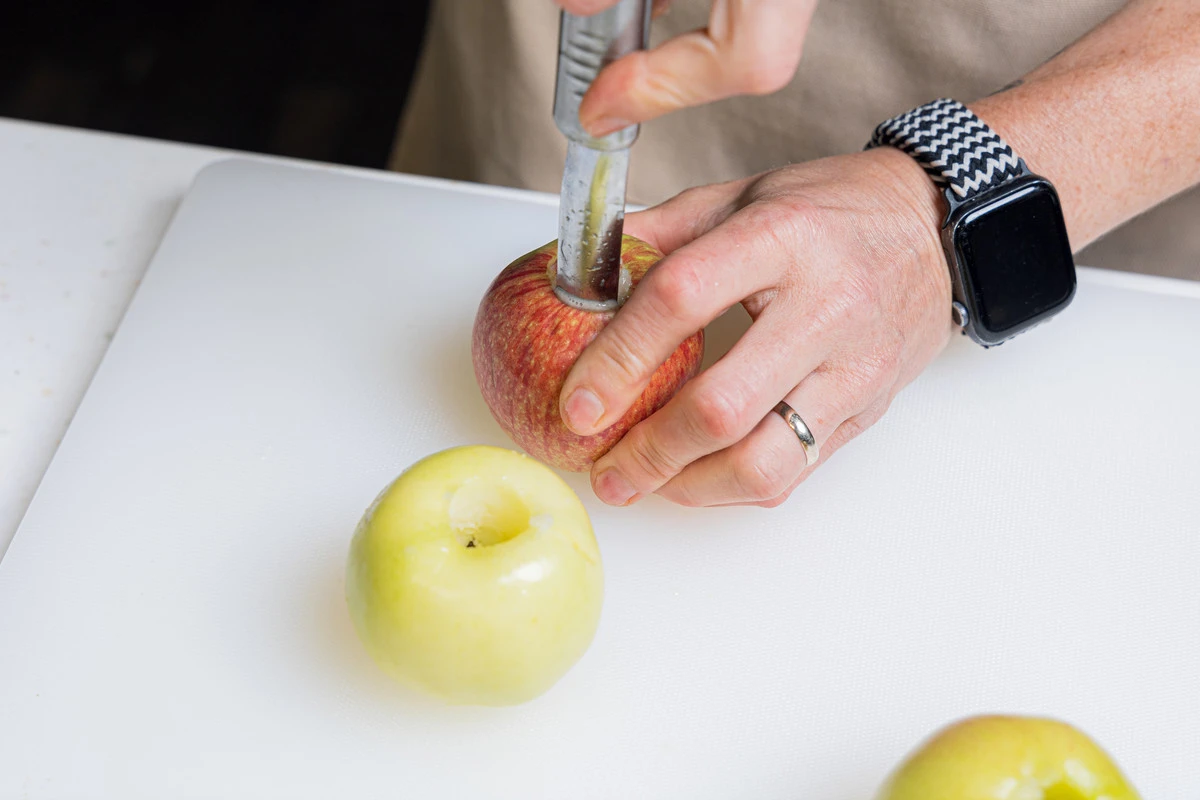 Яблоки помойте, вырежьте сердцевинки, нарежьте дольками толщиной примерно 0,5 см.