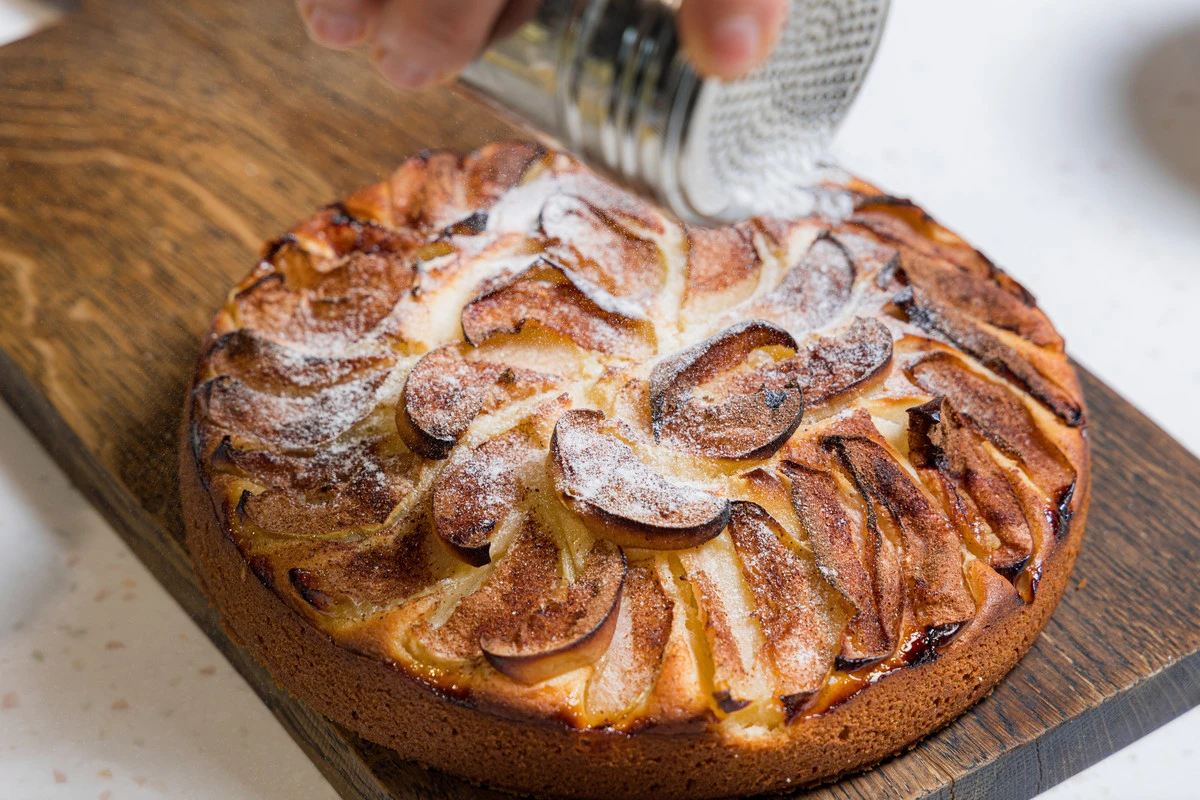 Перед подачей по желанию посыпьте пирог сахарной пудрой.