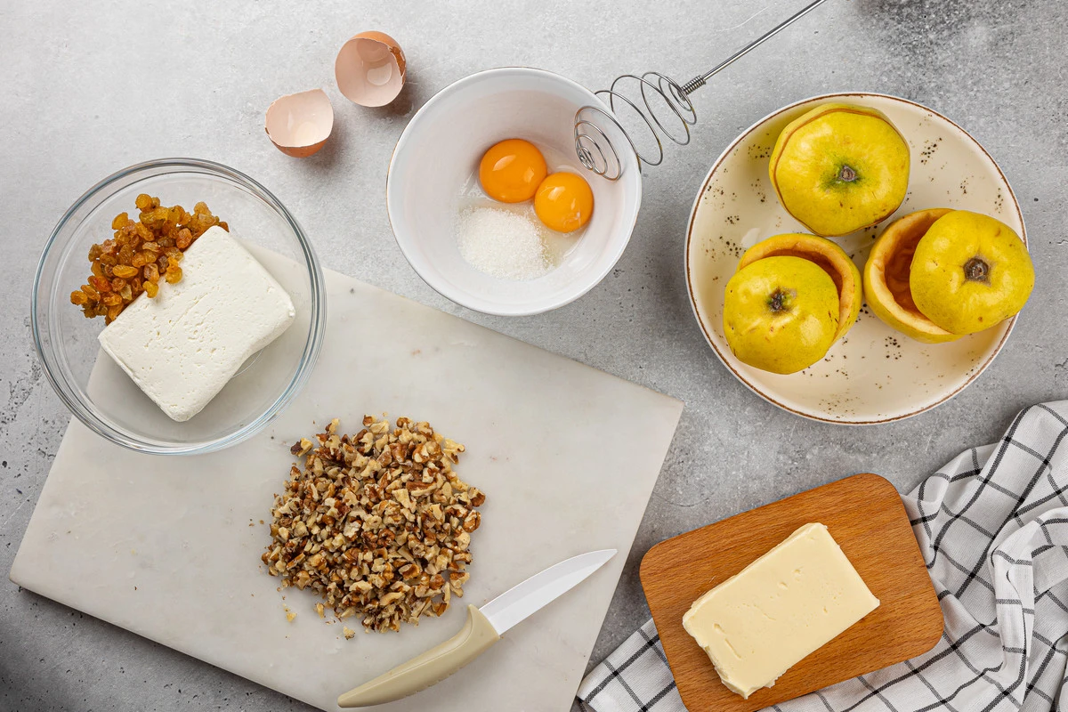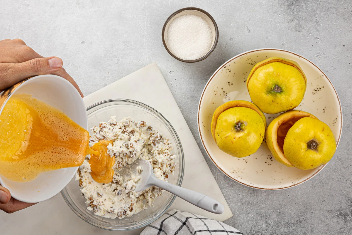 Рецепт «Запечённая айва с творогом, изюмом и орехами»