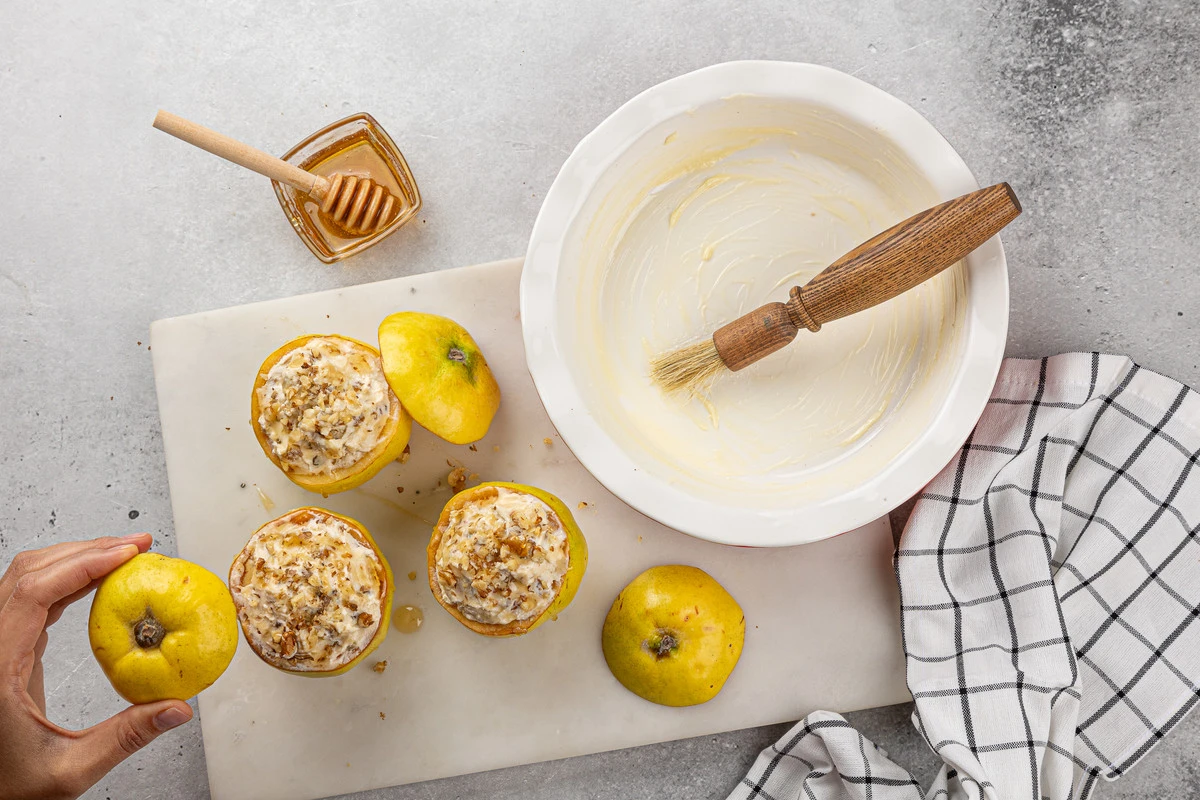 Если вы любите запечённые яблоки, попробуйте приготовить по тому же принципу айву. Начините её творожной смесью с орехами и изюмом. Такое блюдо прекрасно подойдёт на завтрак, полдник или перекус.