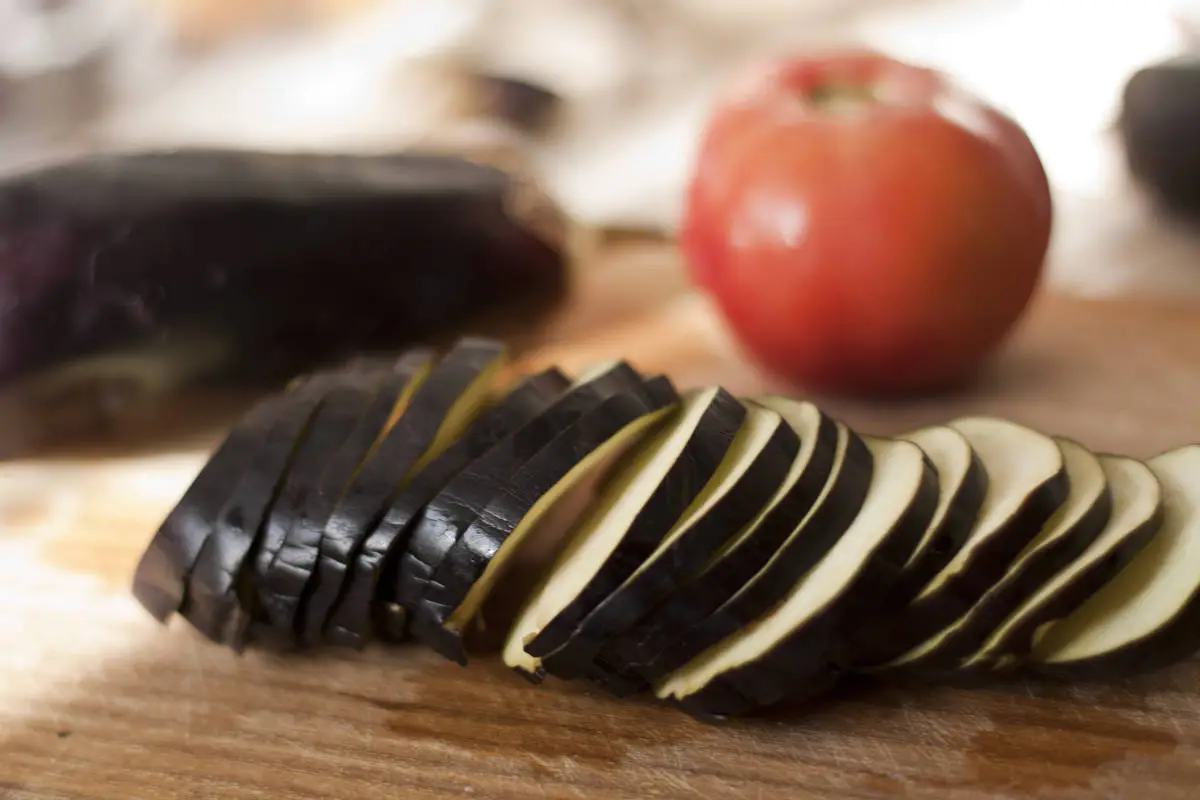 Картофель почистить, нарезать очень тонко. В глубокий противень выкладывать слоями: баклажаны, картошку, кружки помидора. Слои с картошкой можно промазывать сметаной, тогда нужно подлить немного воды, а можно просто добавить сливки. В первом случае получится острее, а во втором — нежнее, в общем, на ваш вкус.
