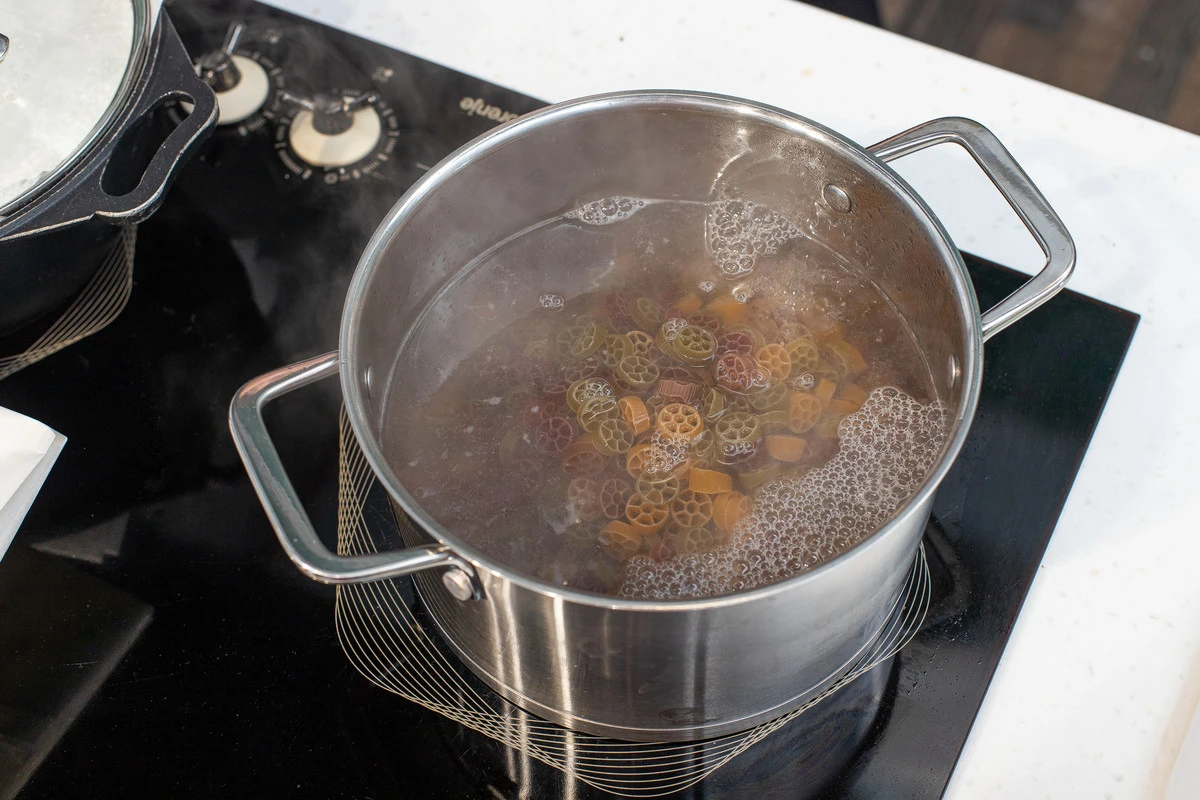 Макароны отварите в течение 5 минут в кипящей воде, слейте воду.