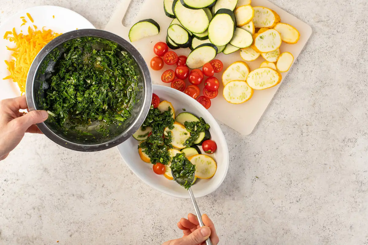 Рецепт «Запеканка из цукини с чеддером и соусом чимичурри»