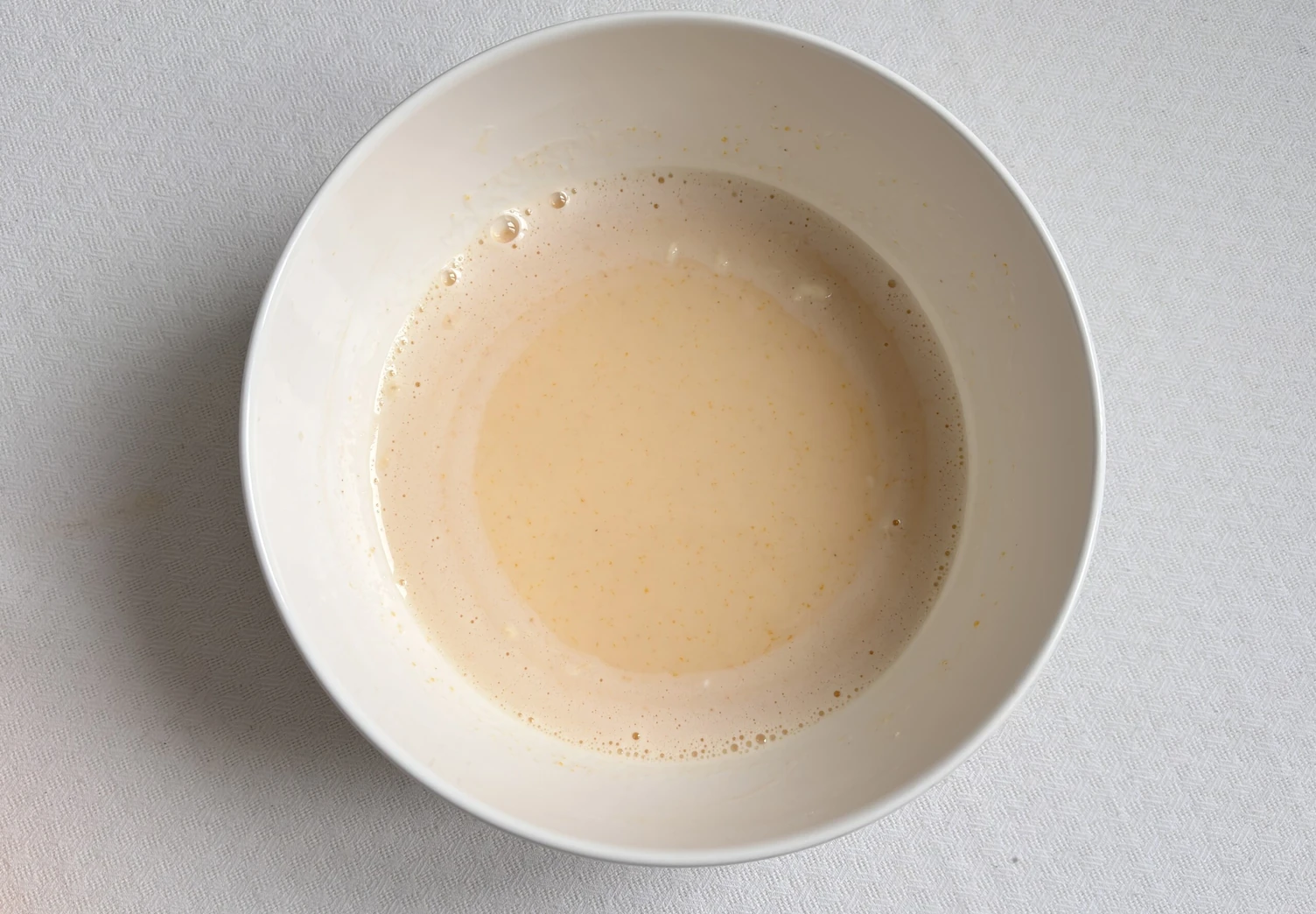 В миске при помощи венчика смешайте желтки, сахар, ванильный сахар.