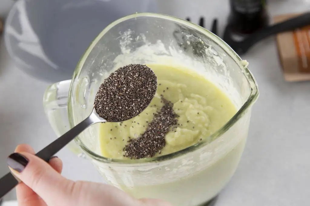 После добавить растопленное масло, взбить. Чиа вмешать ложкой.