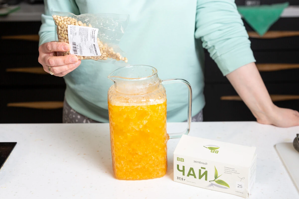 Рецепт «Зелёный чай с мандаринами и кедровыми орехами»