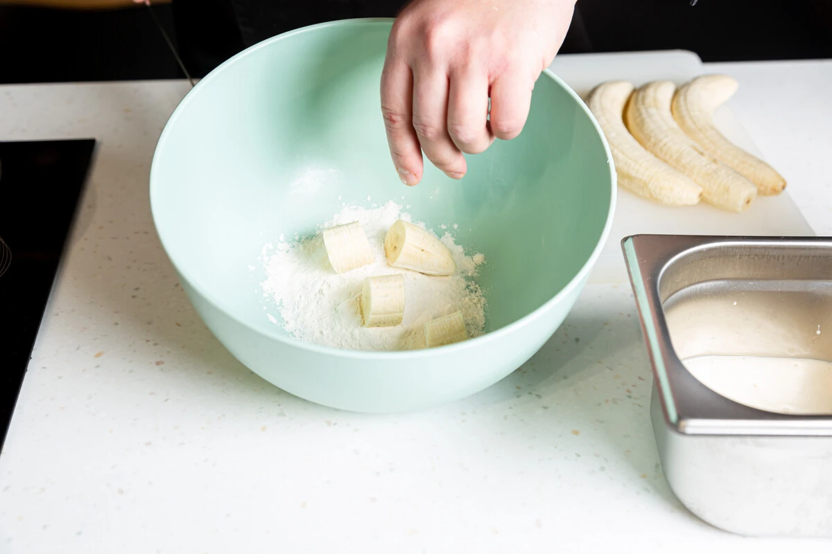 Окуните бананы в кляр и жарьте на хорошо разогретой сковороде с растительным маслом.