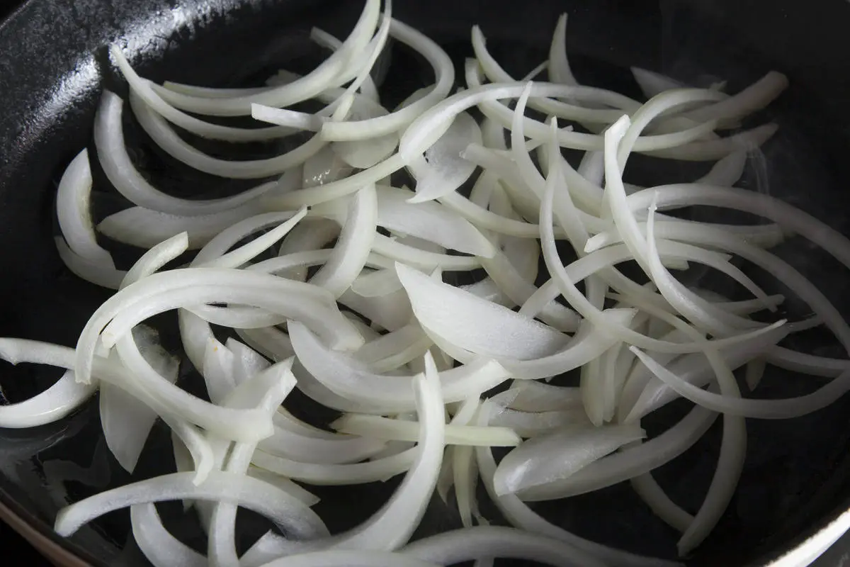 На хорошо разогретой сковороде обжарьте лук, выложите на тарелку.