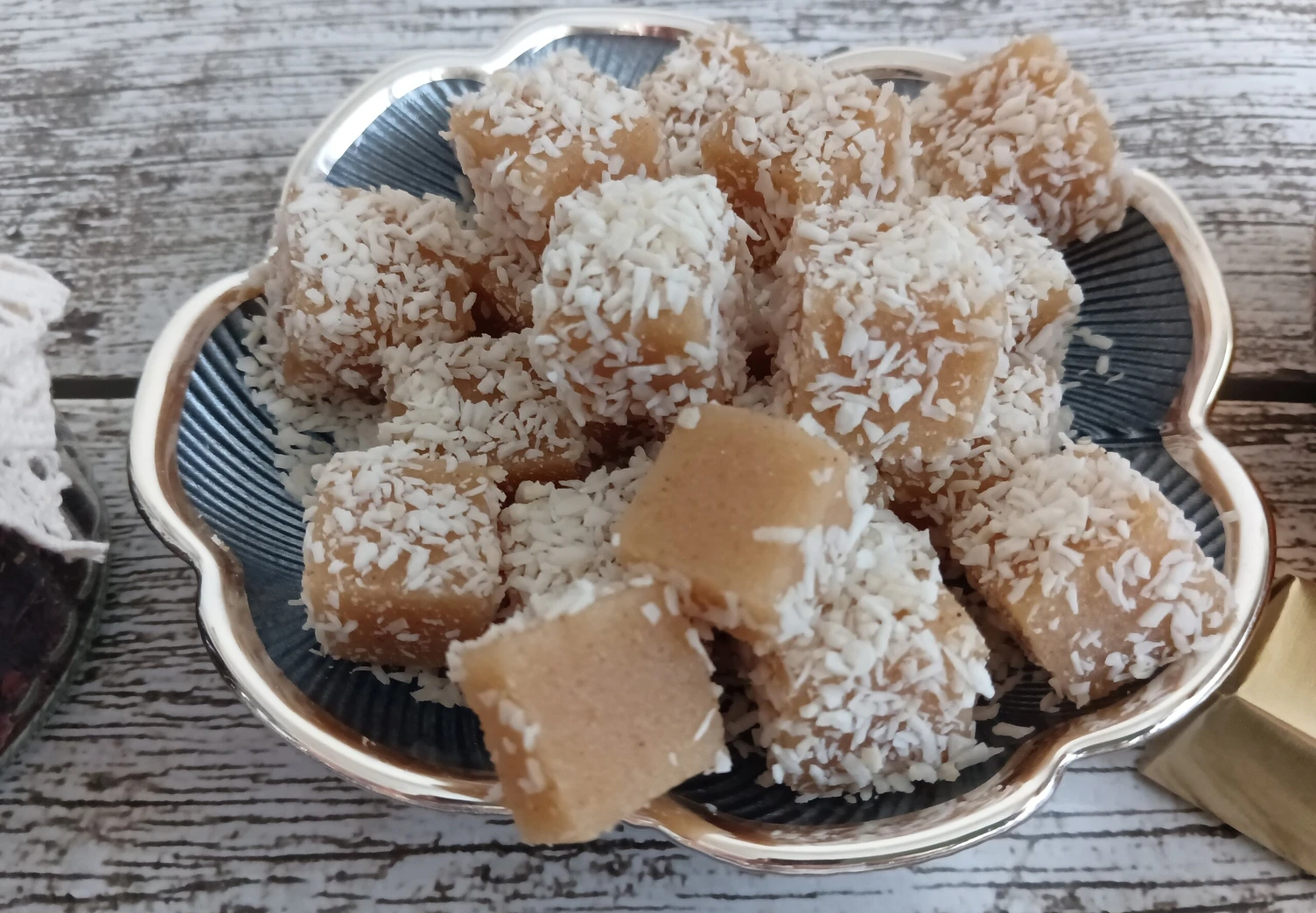 Пласт застывшего пюре разрежьте на кубики. Часть конфет обваляйте в кокосовой стружке, остальные полейте растопленным на водяной бане шоколаде, охладите до застывания и подавайте.