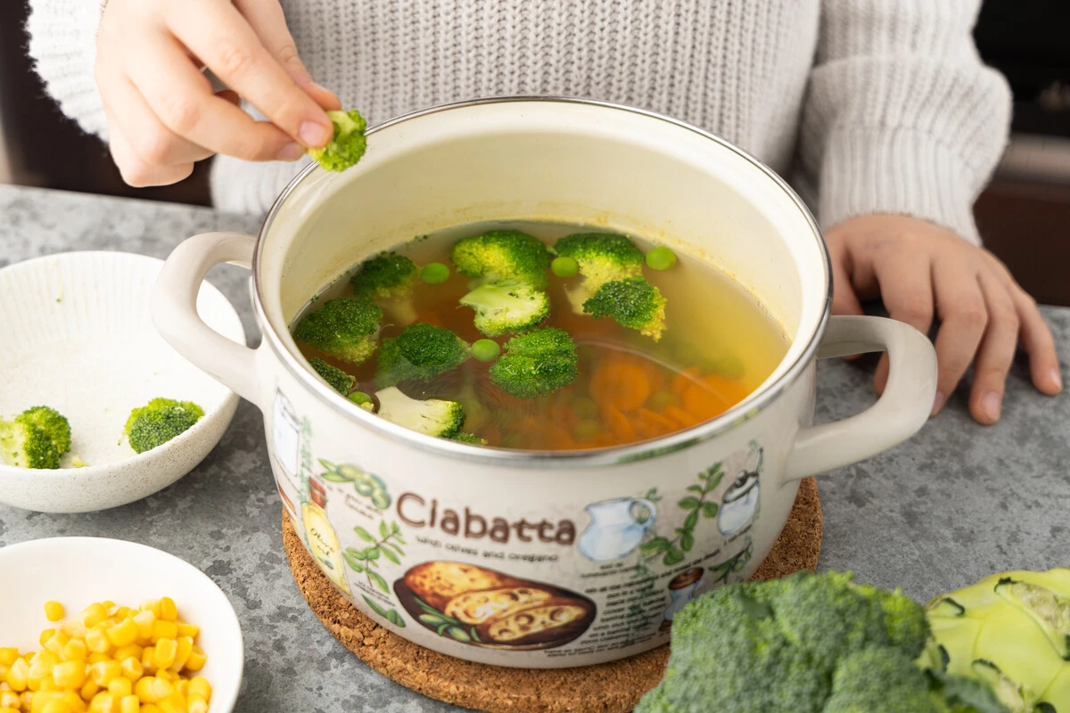 Добавьте брокколи и варите ещё 1 минуту.
