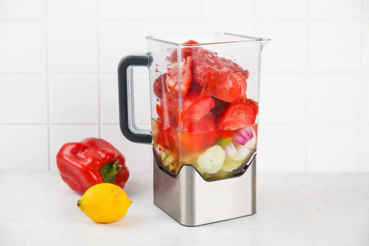 Гаспачо — такая же классика испанской кухни, как для нас щи или борщ. А значит, нет единственно верного рецепта! В этом варианте мы не добавляем сельдерей и чеснок, зато используем консервированные томаты для более насыщенного вкуса.